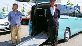 父が思いがけない病気のため、自宅で車椅子生活を送ることになりました。それまでは活動的で多趣味で毎日のように車で出かけていましたが、自宅では父の趣味を続けるのは難しいと諦めているようでした。何とかしたいと福祉車両の購入を決め、数か月前から福祉車両の車種・仕様・価格などを調べ始めました。ネットで新車・中古車を探しているとき、中古の福祉車両を多く取り扱う会社のホームページを見つけ、毎日のようにチェックしていました。車椅子からでも車窓を楽しめること、移動時間が長いときには助手席に座れること、大家族なので、車椅子を使用しないときは5人以上が乗車できること。上記3点を満たす車を探しましたが、新車はあまりの高額に諦めていたところ、介護福祉関係の業者さんが、「旭川の向こう側にたくさんの福祉車両を置いているところがあるよ。」と教えてくださり、直ぐに出向いて見つけた看板が「オアシスジャパン」。ずっとホームページを見ていた会社です。何か不思議な力が働いているように感じました。恐る恐るドアを開けて入り、これまでの事情や経緯をお話しすると、希望に合った車はなかなか出回らない仕様ではあるが、積極的に探すと約束してくださり、今回の車探しはここにお任せしようと決めました。