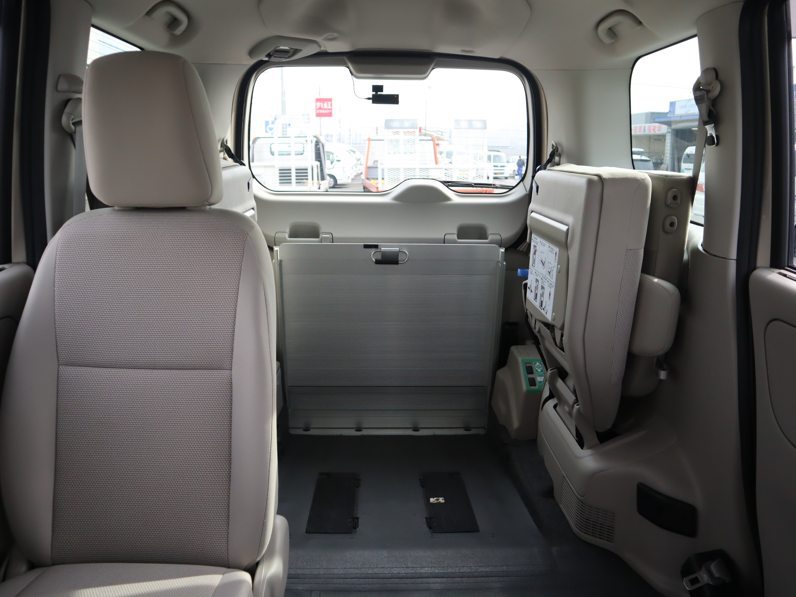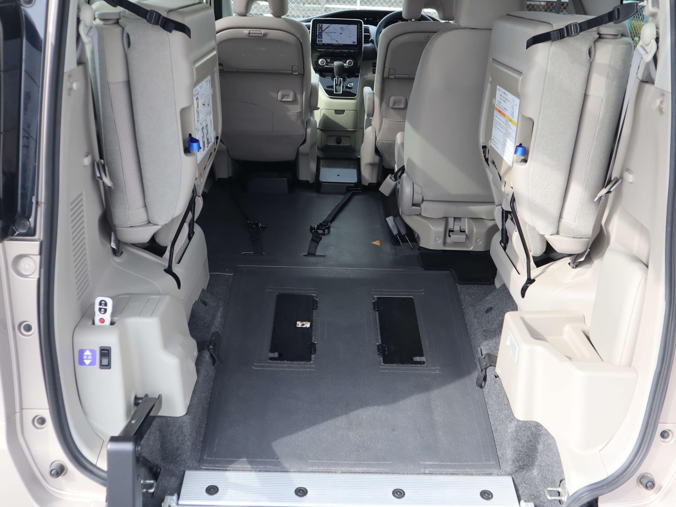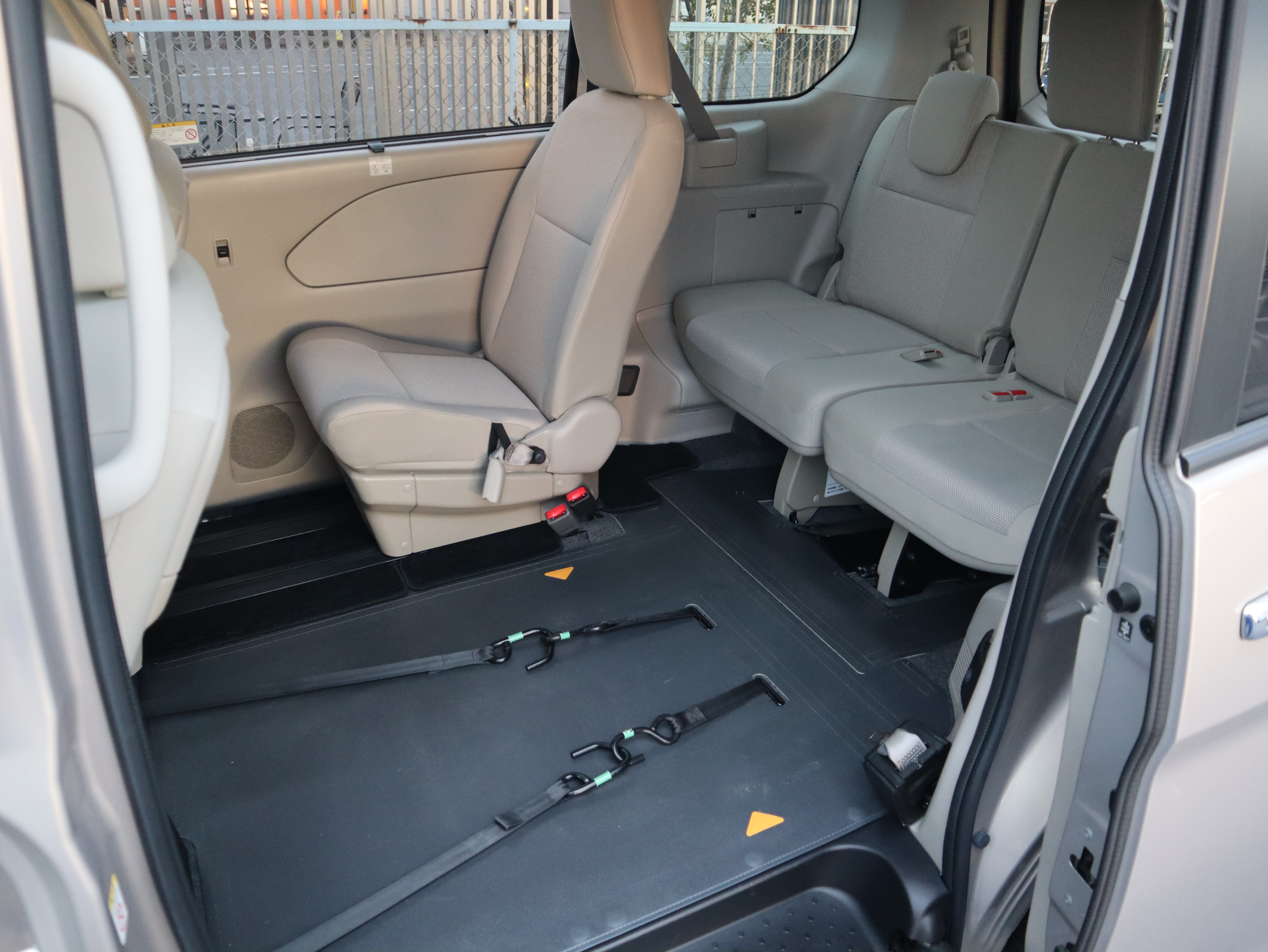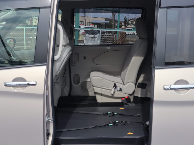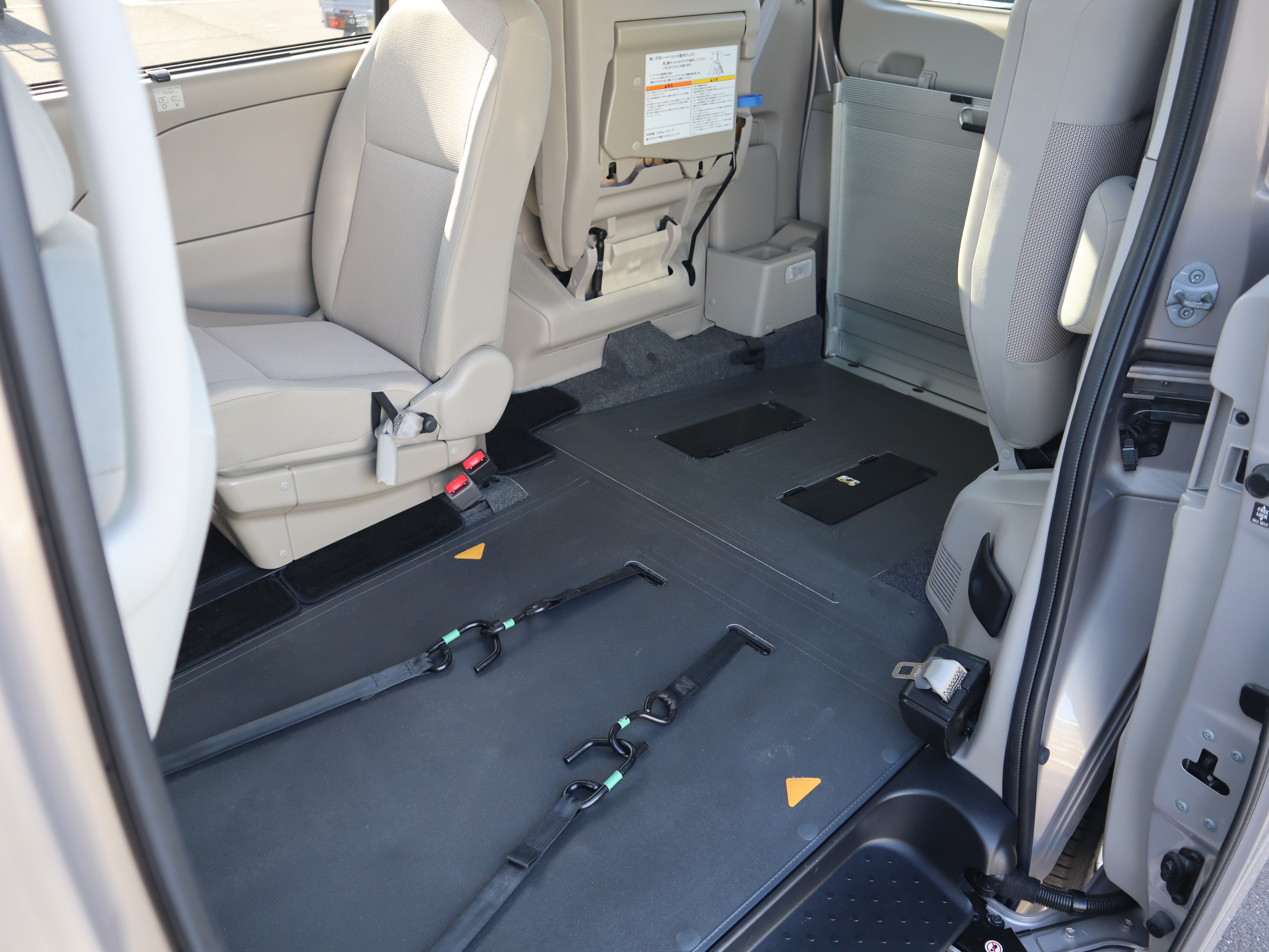 助手席の後ろが車いすの方のスペースです。ウィンチベルトが車いすを引っ張り上げてくれます。車いすスペース用フロアマット付きです。