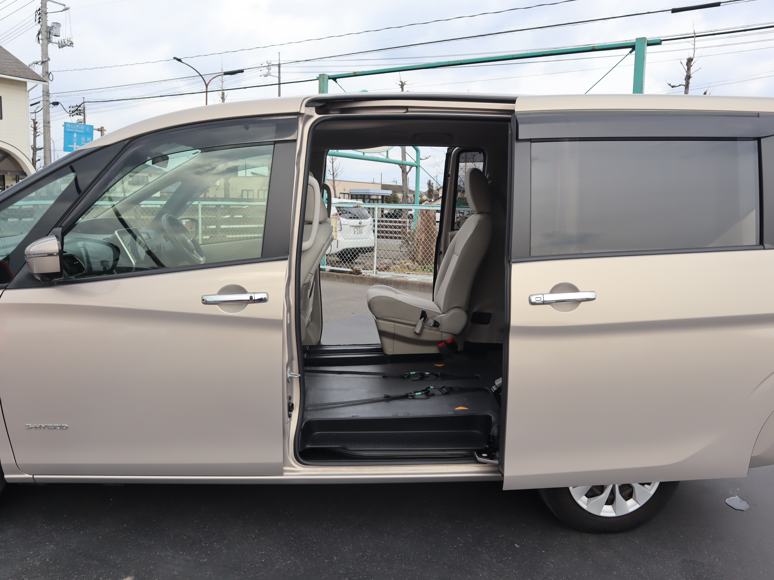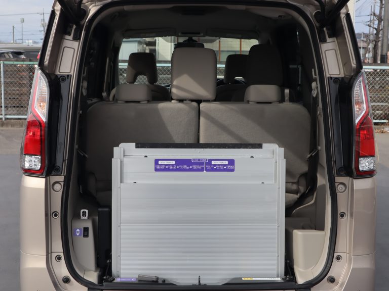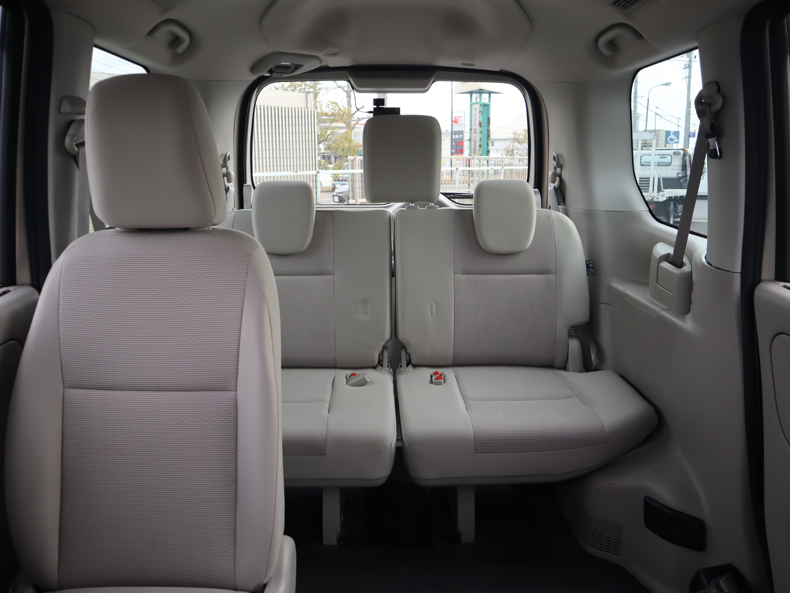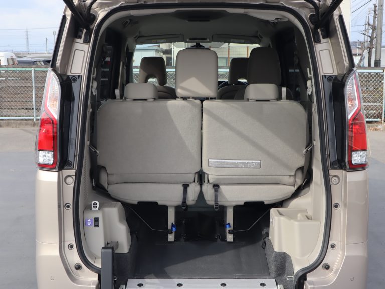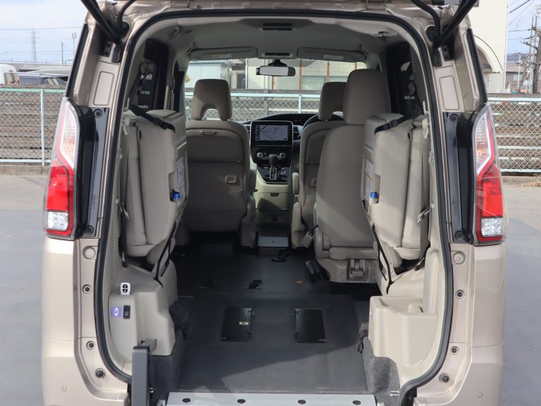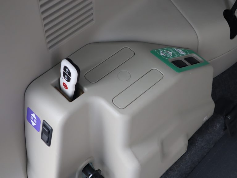 助手席の後ろが車いすの方のスペースです。ウィンチベルトが車いすを引っ張り上げてくれます。車いすスペース用フロアマット付きです。