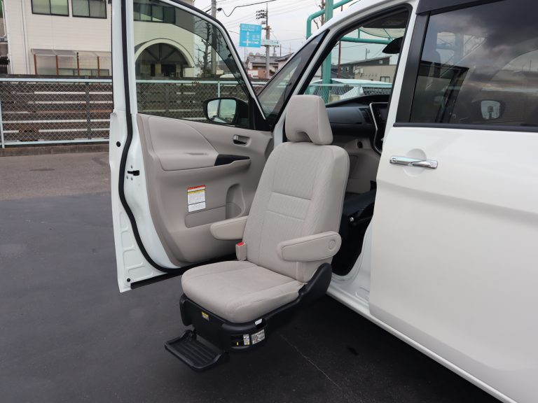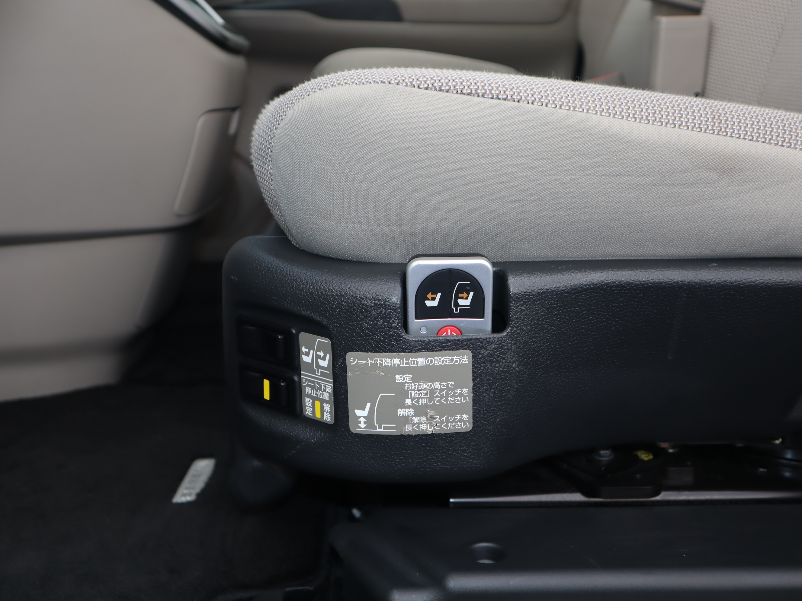 助手席の回転と昇降は、シート左のスイッチかリモコンで操作します
