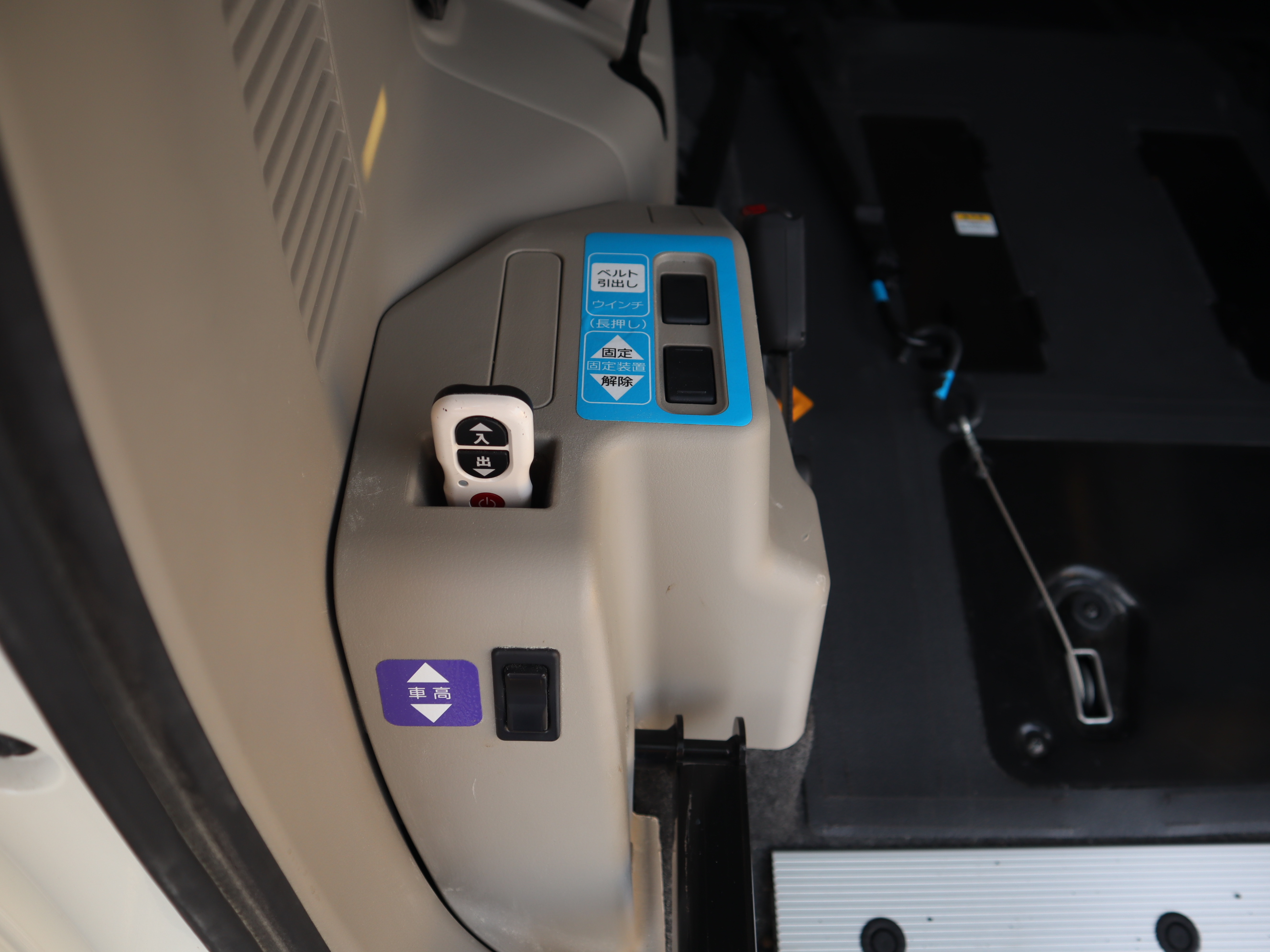 ウィンチ用リモコン、車高調整スイッチ、電動固定のスイッチです。