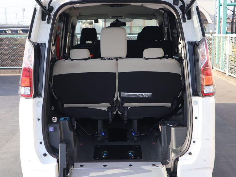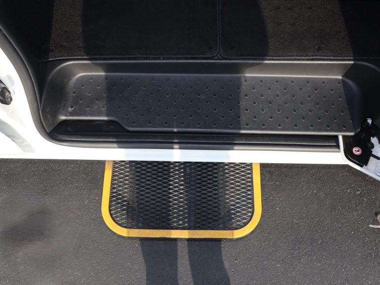 後ろの車高が下がるので、車いすの方が乗り込みやすくなります♪しかも電動ステップ付きです♪