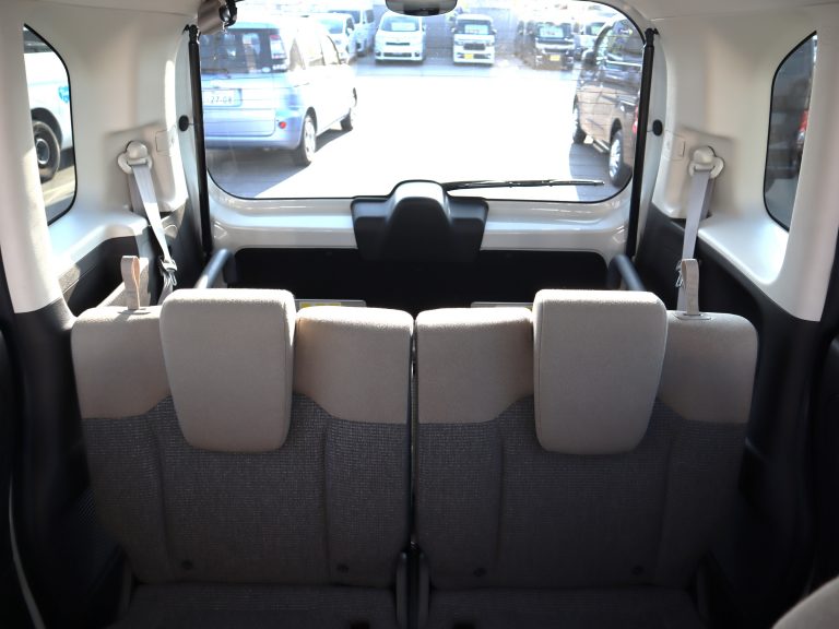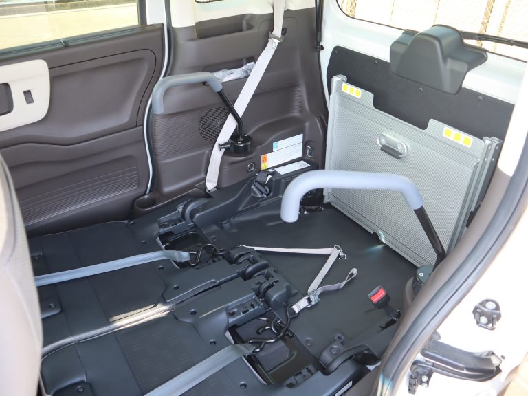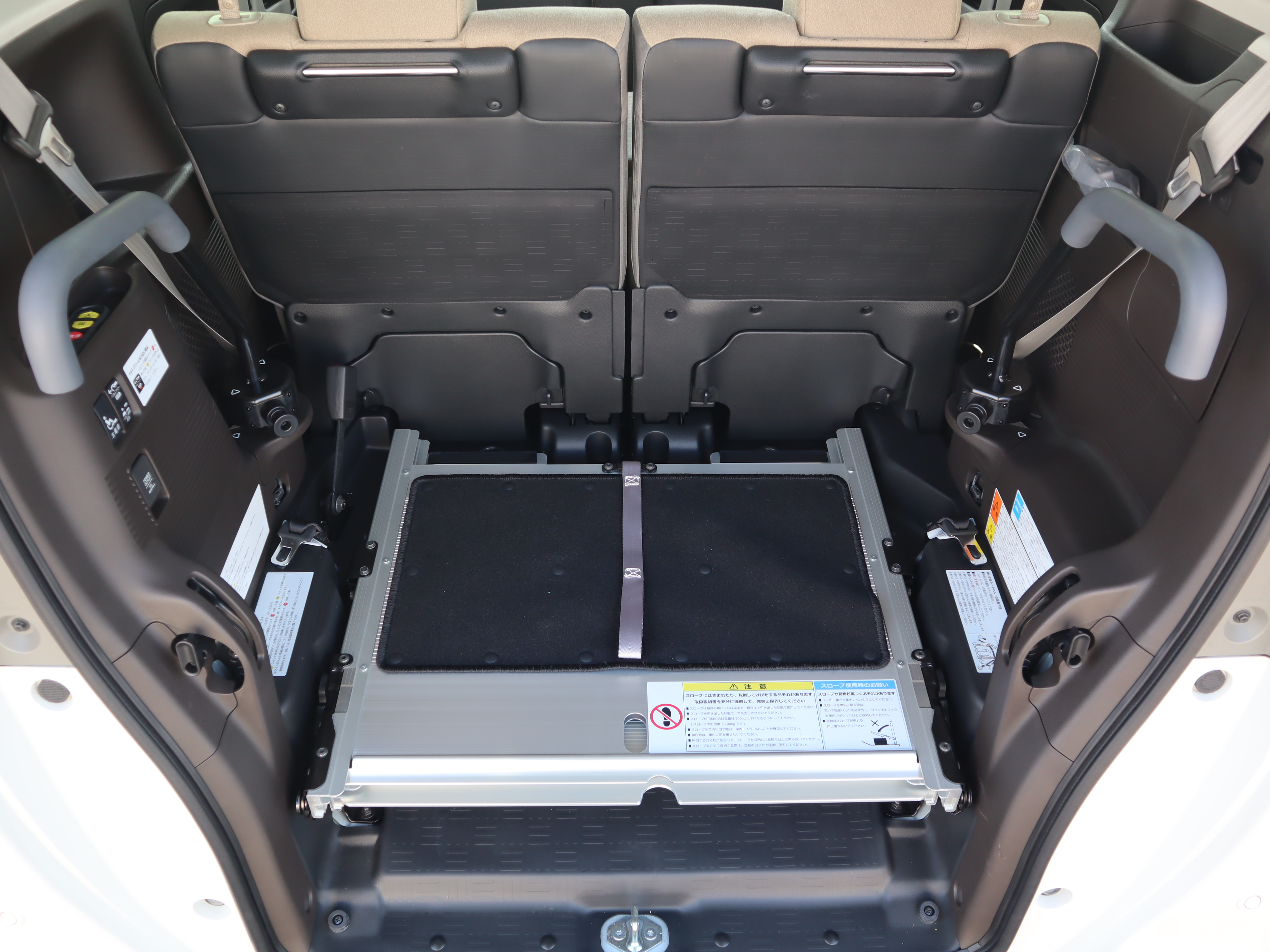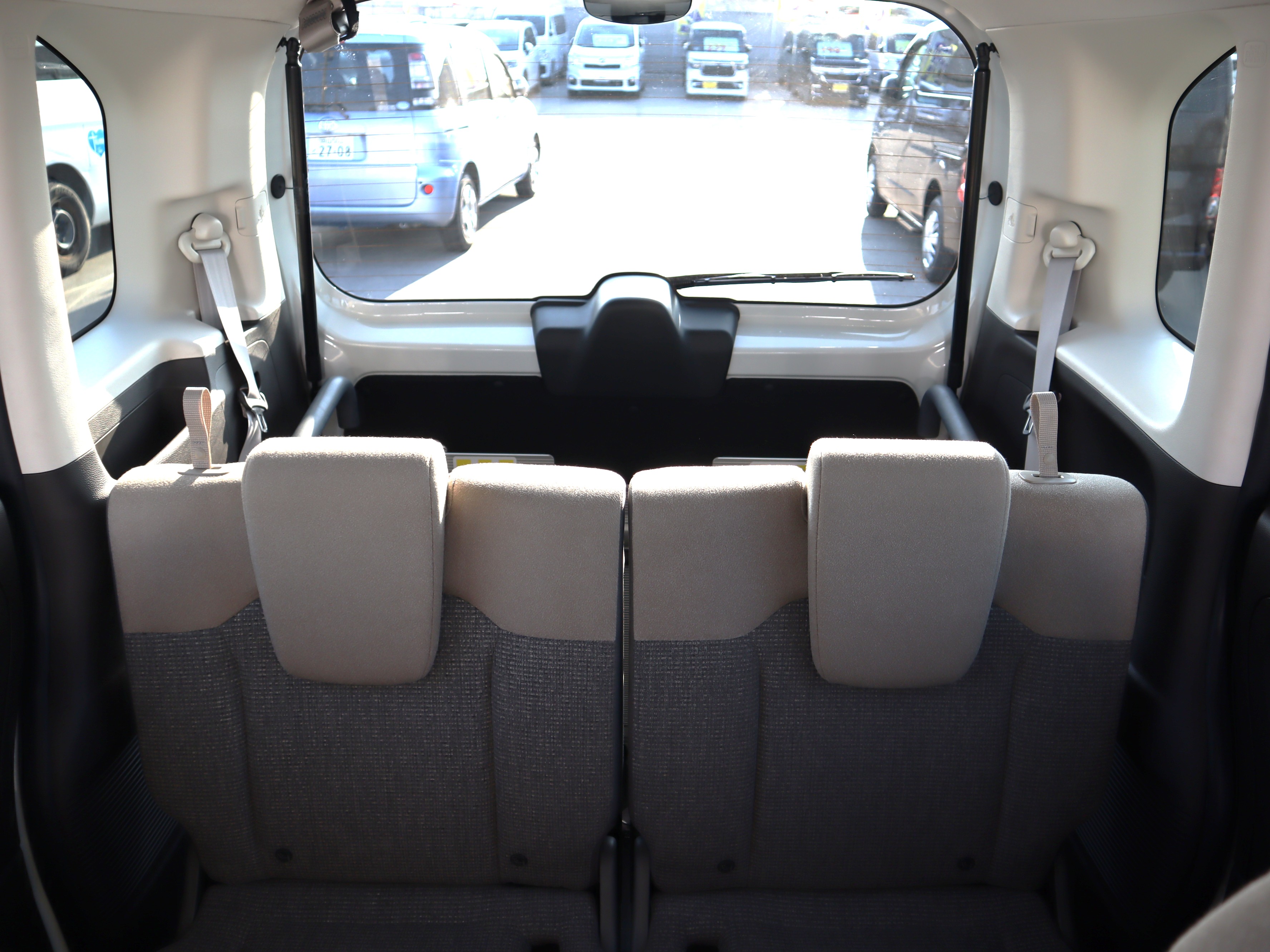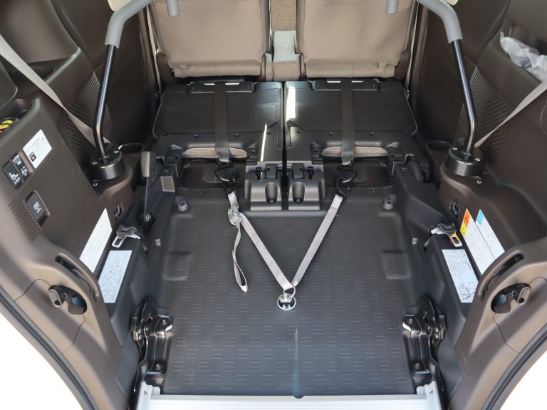 リヤシートを収納して車いすの方が入ります。車いすの方1名と他に2名の3人乗りになります。