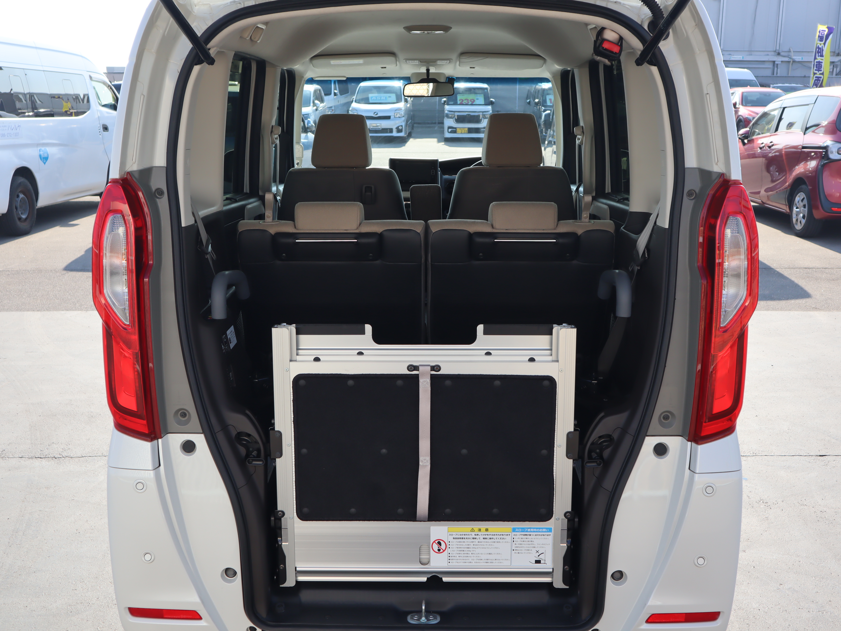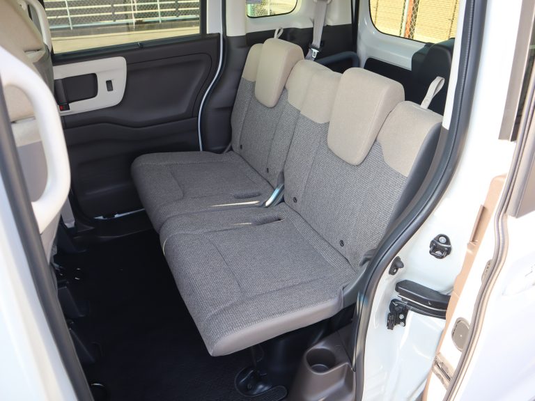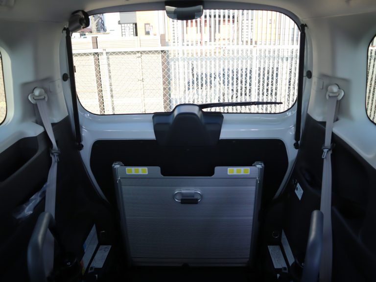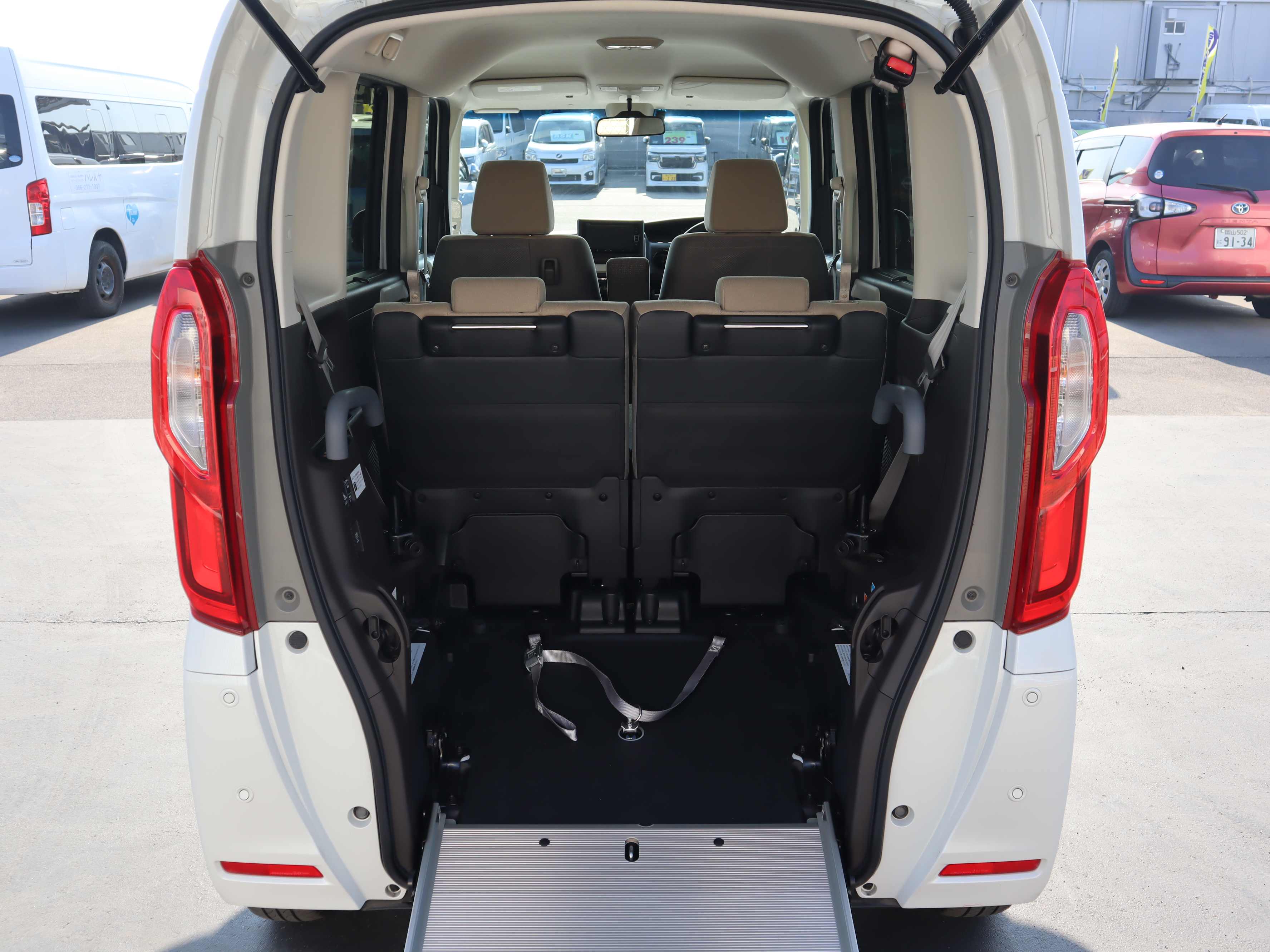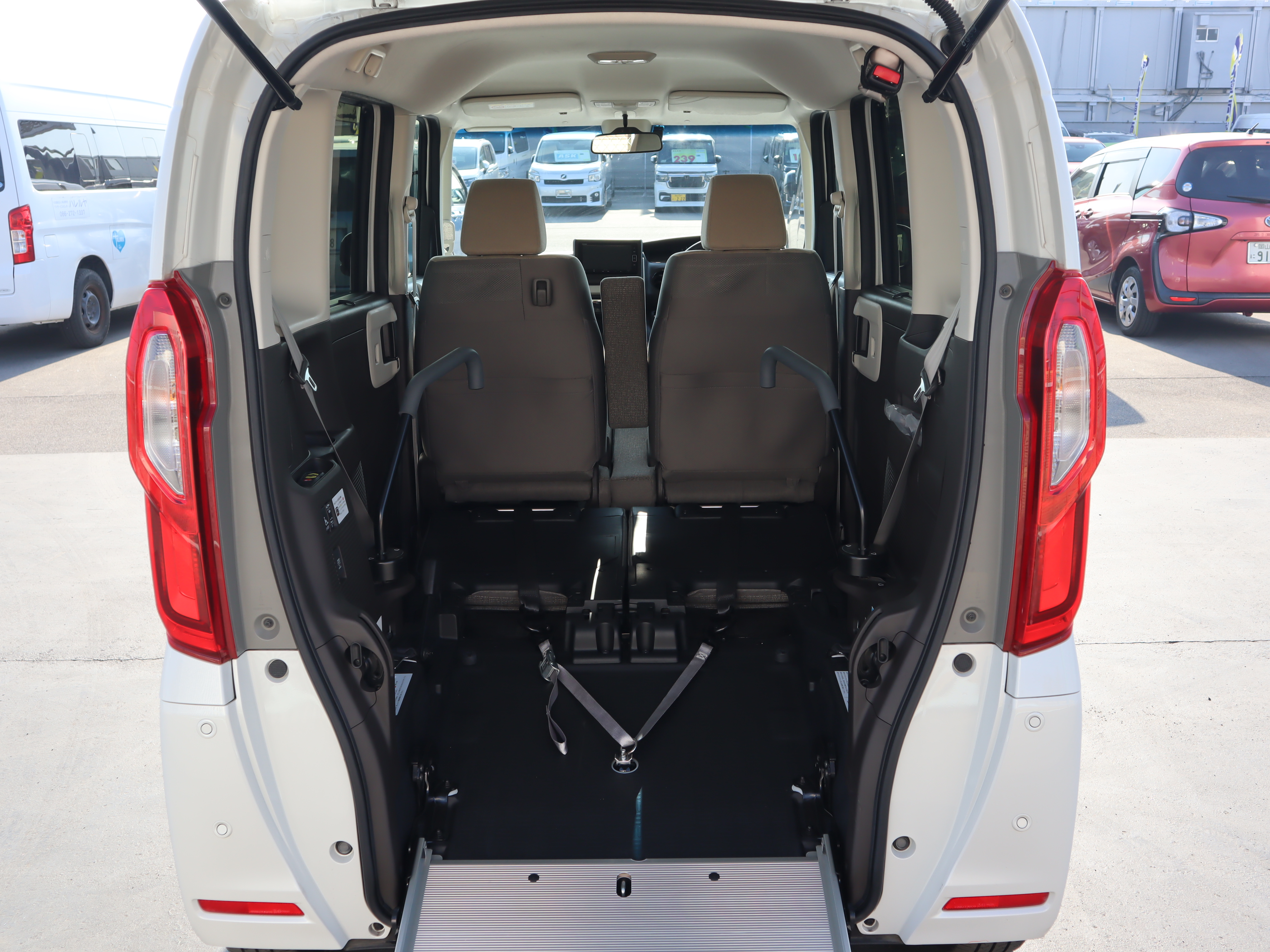 リヤシートを収納して車いすの方が入ります。車いすの方1名と他に2名の3人乗りになります。
