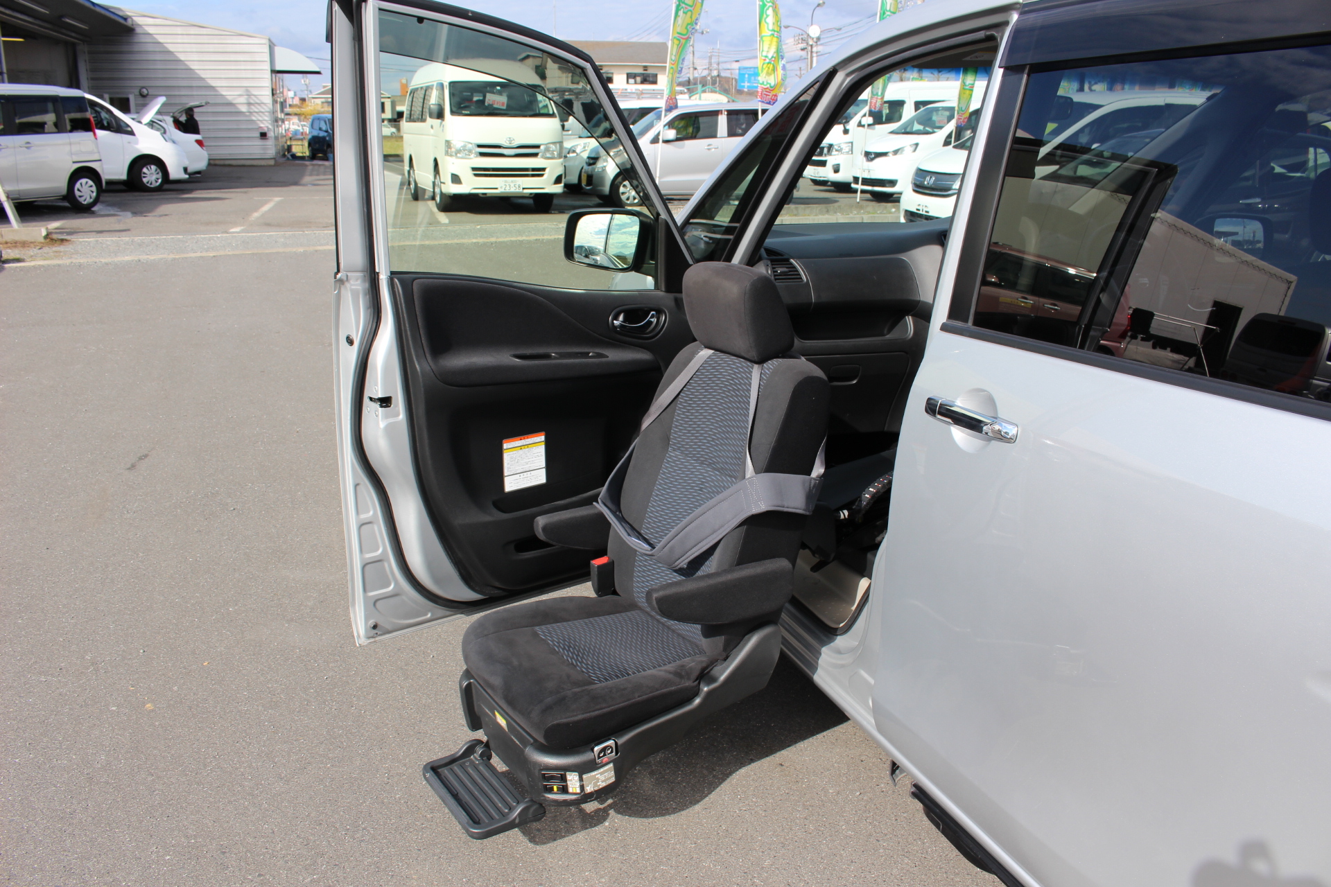 助手席の回転と昇降は、シート左のスイッチかリモコンで操作します。