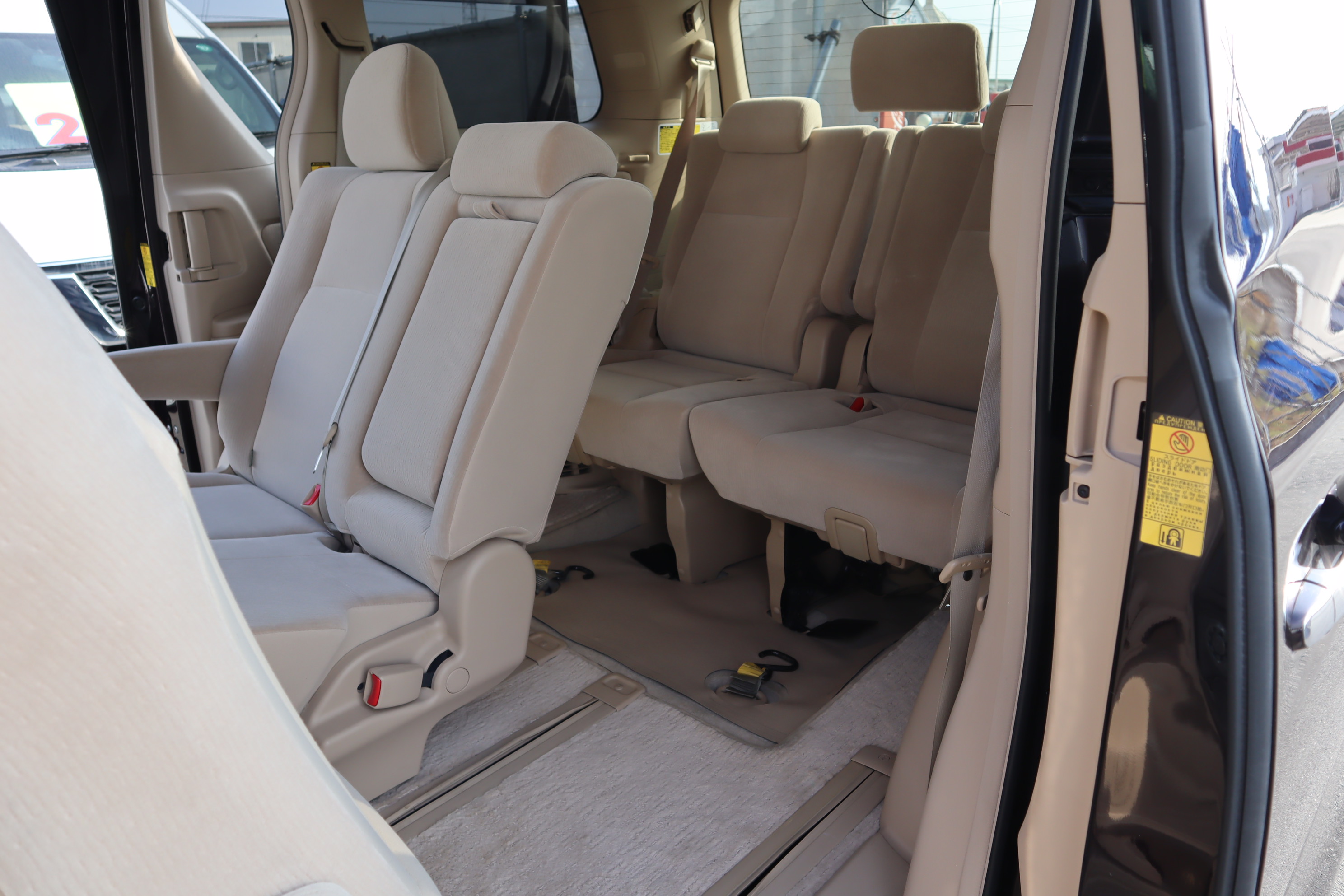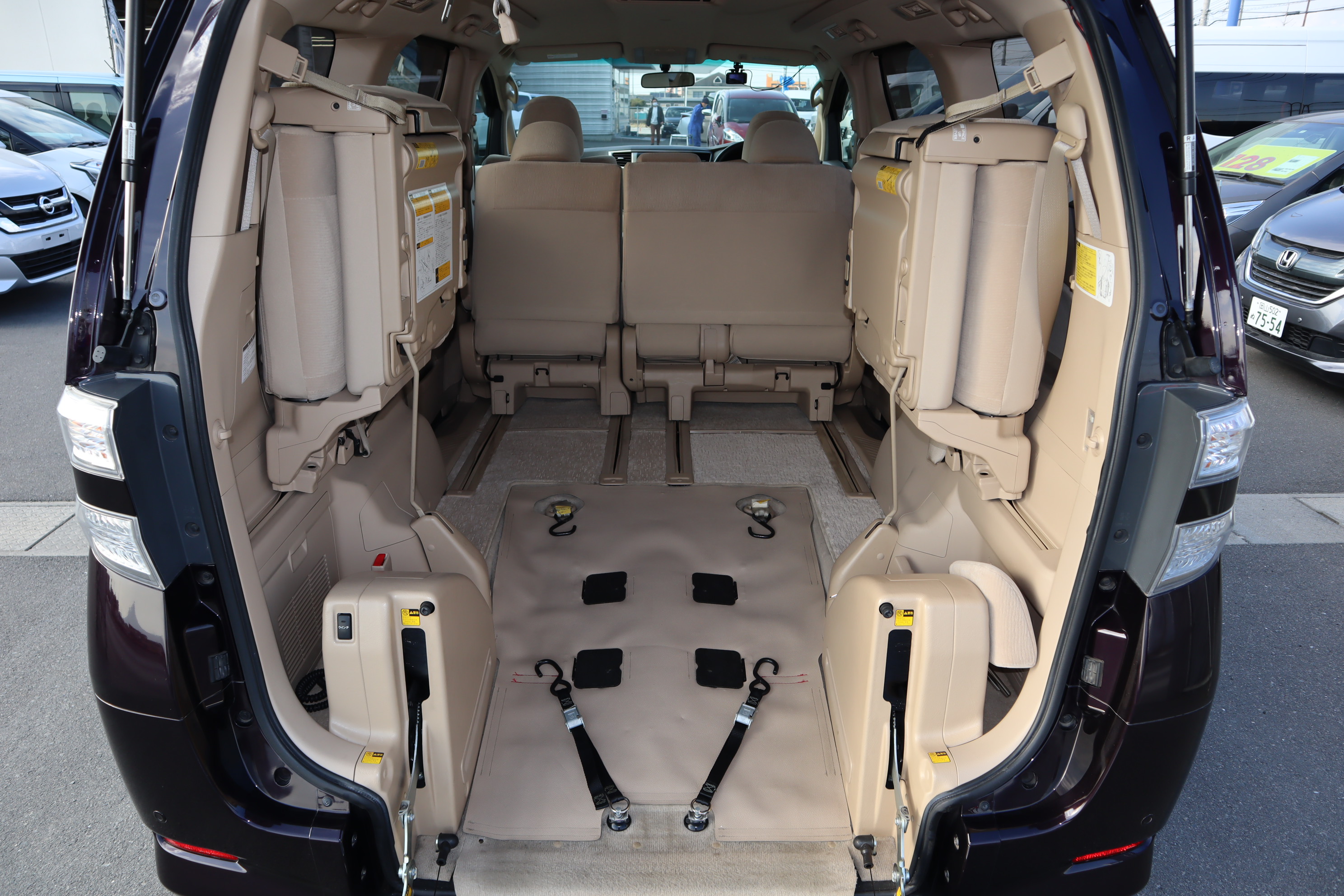 3列目シートを左右に跳ね上げて車いすの方が入ります。車いすの方1名と他に5名の6人乗りになります。