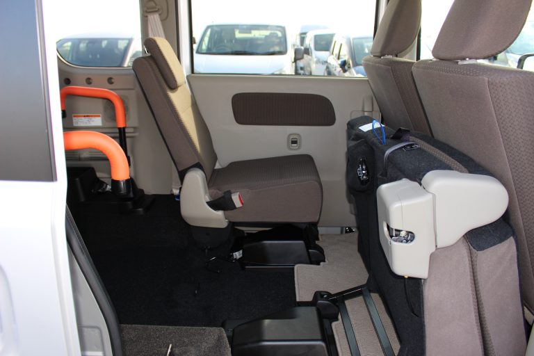 車いすのサイズが大きいときは、もう一つのリヤシートも跳ね上げることができます。
