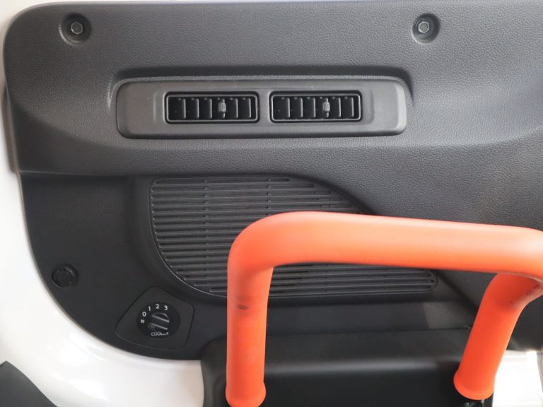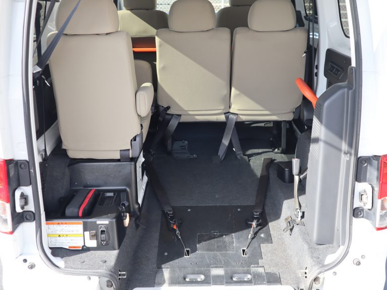 スロープ板を展開して車いすの方が入ります。車いすの方1名と他に6名の7人乗りです。