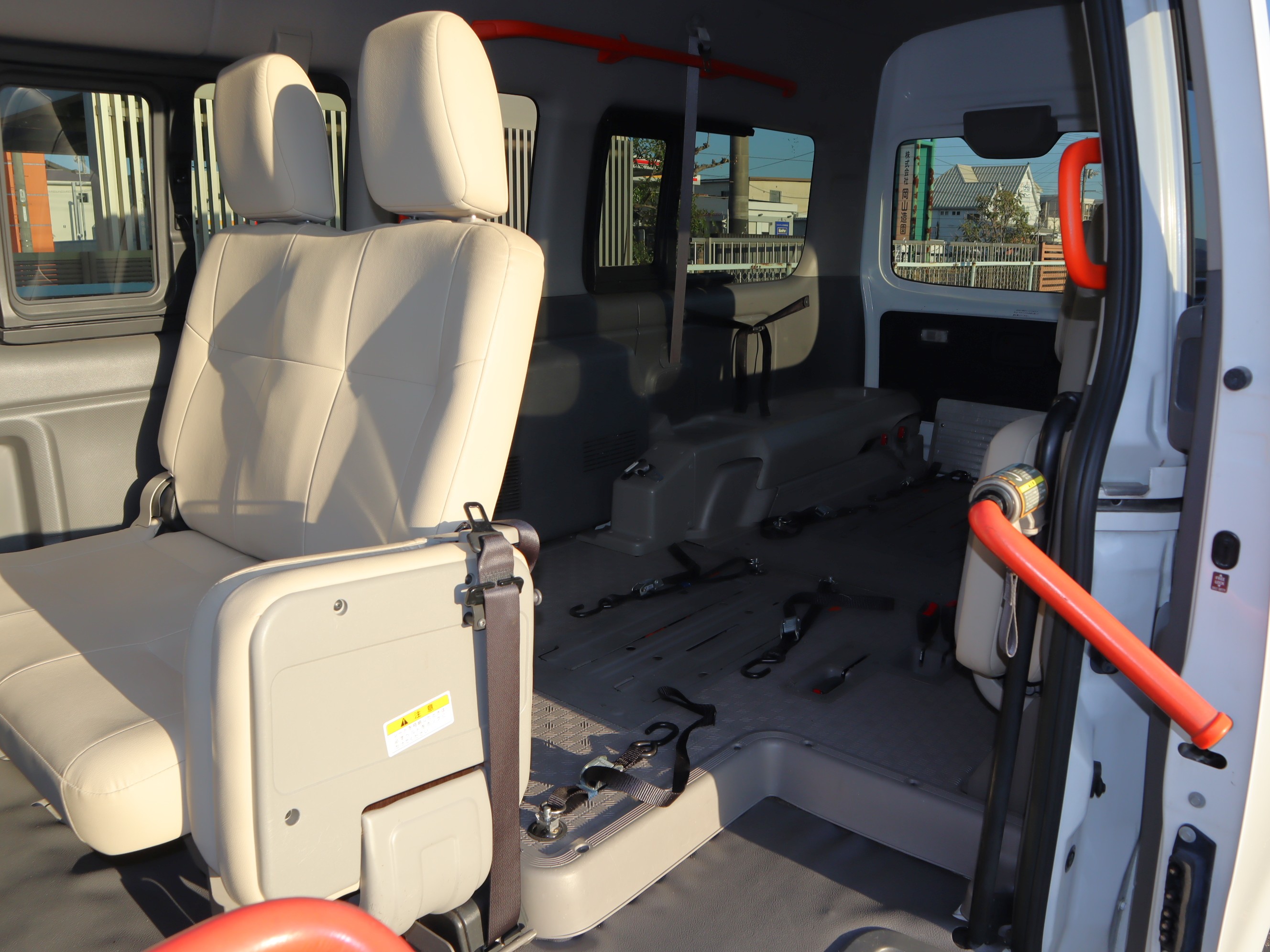 ABS、運転席・助手席エアバッグ、キーレス、衝突被害軽減ブレーキ、アラウンドビューモニター(ルームミラー内)、リヤクーラー、リヤヒーター、出てくる手すり(前後)、アシストレール(左右)、アシストグリップ、プライバシーガラス、特殊車いす固定ベルト | ||