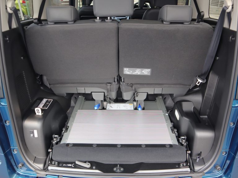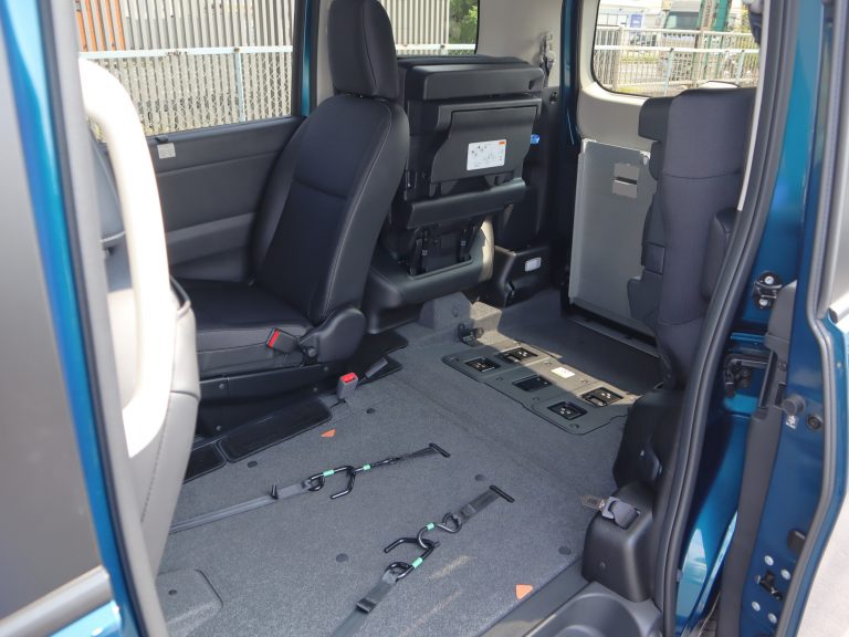 助手席の後ろが車いすの方のスペースです。ウィンチベルトが車いすを引っ張り上げてくれます。
