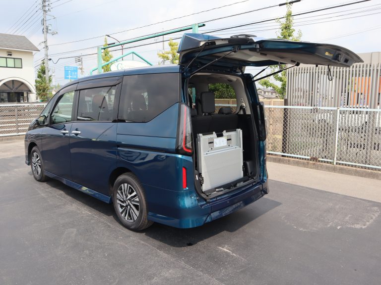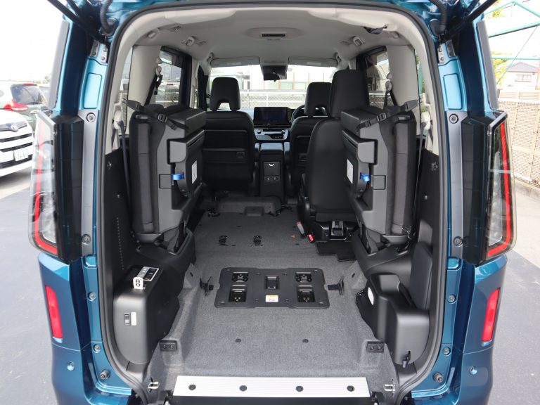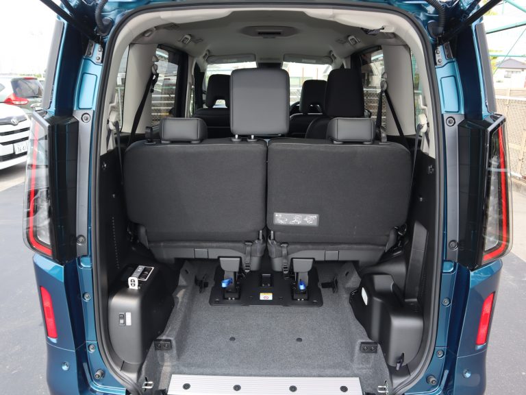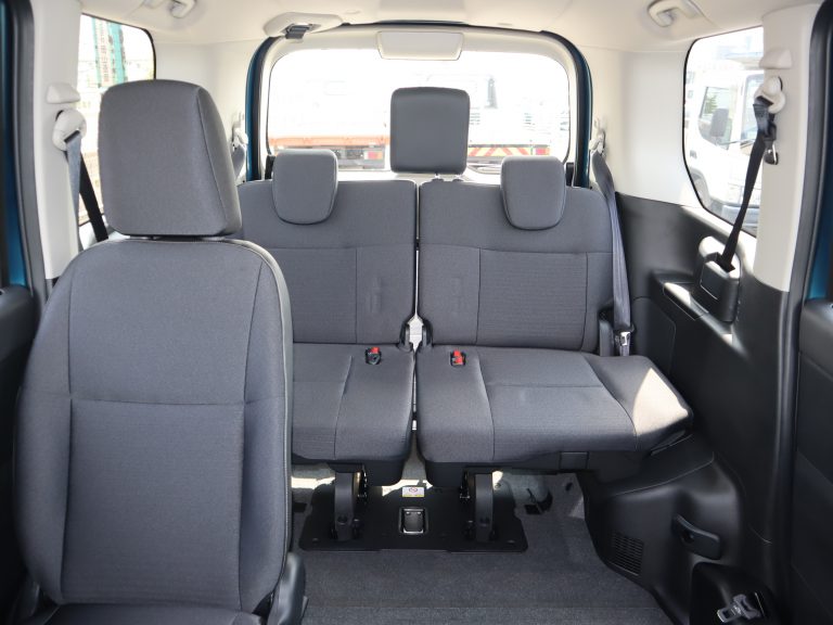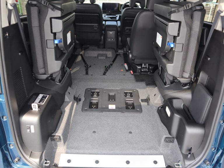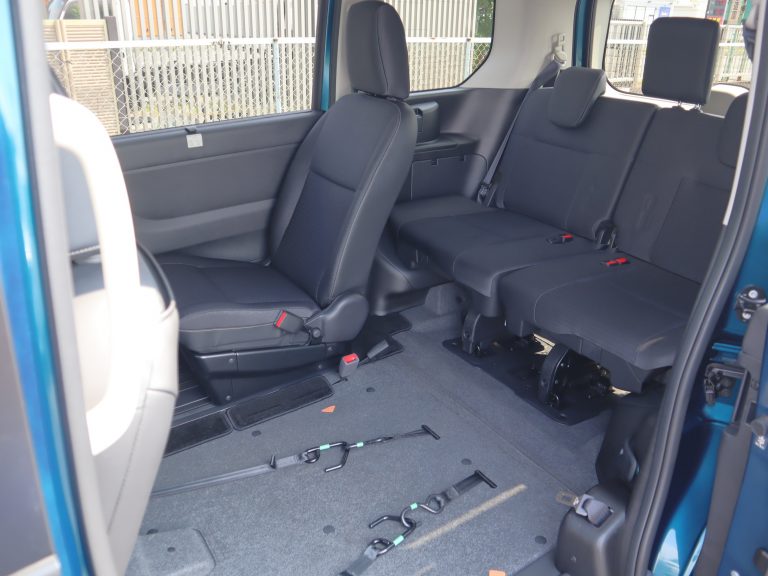 跳ね上げていた3列目シートを戻すと、車いすの方1名と他に6名の7人乗りになります。
