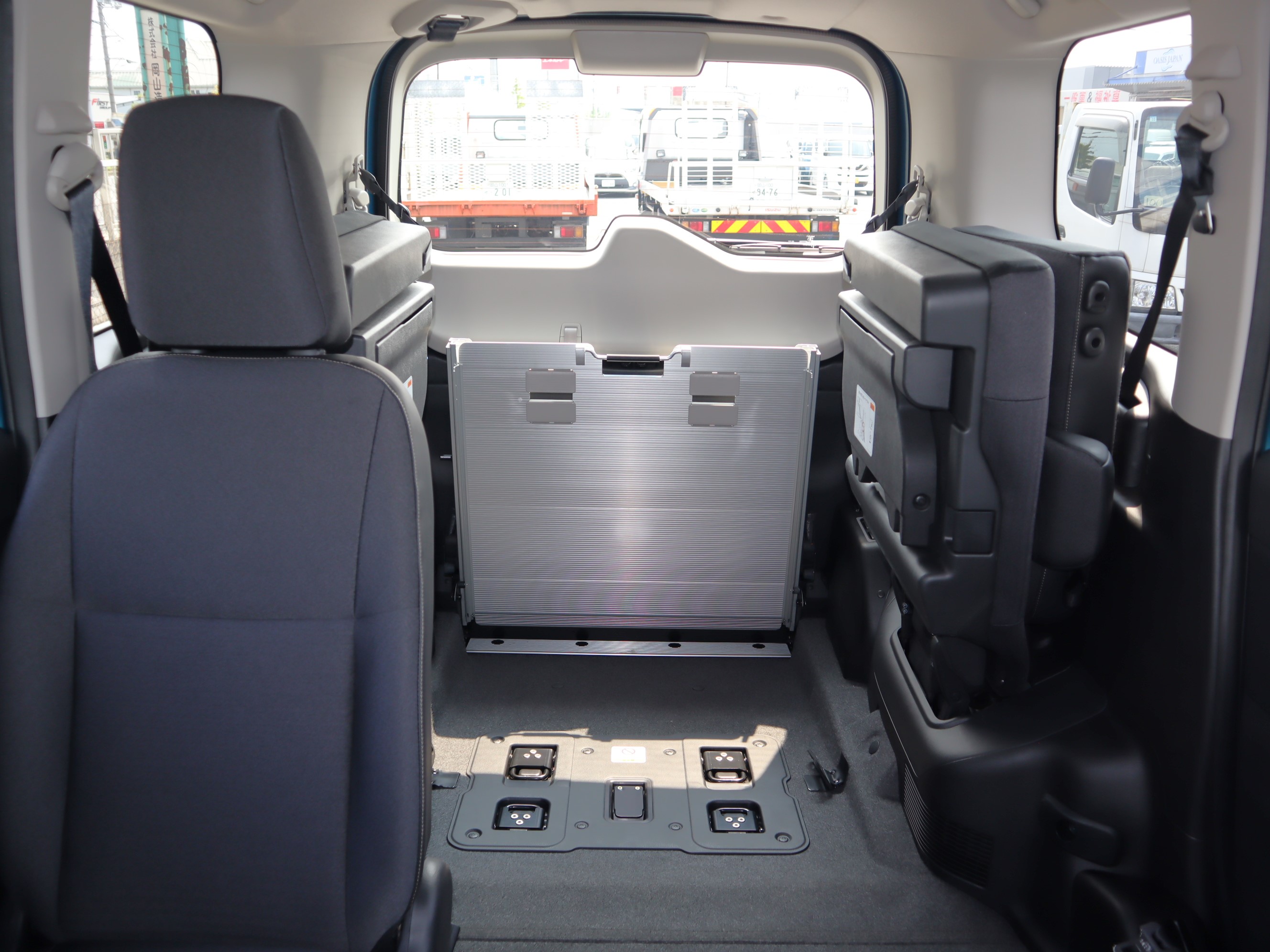 助手席の後ろが車いすの方のスペースです。ウィンチベルトが車いすを引っ張り上げてくれます。