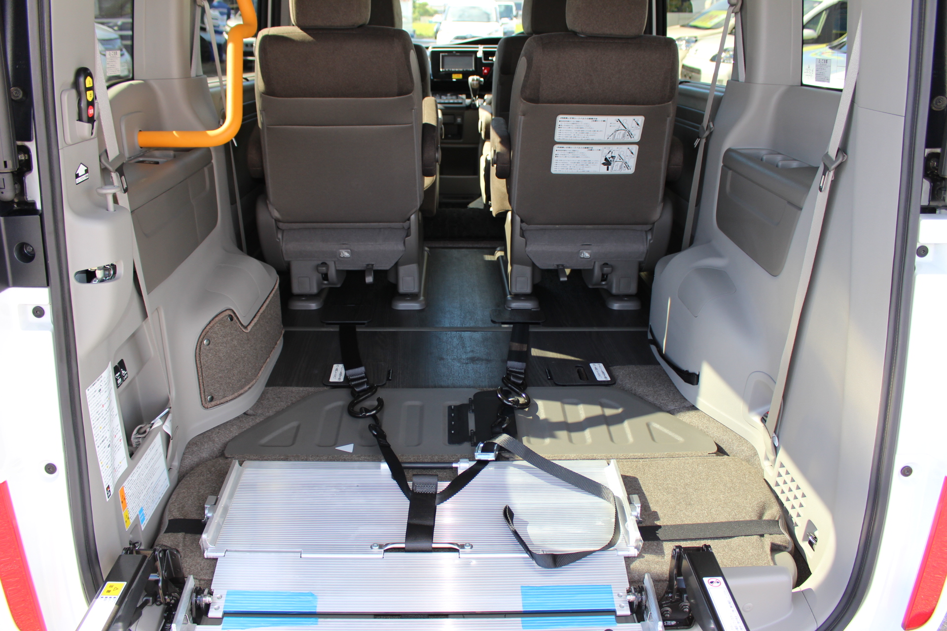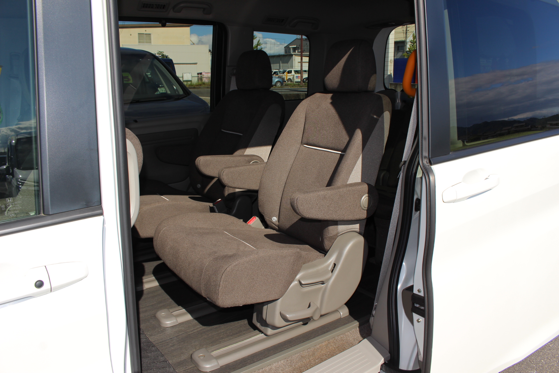 3列目シートの片側を戻すと、車いすの方1名と他に5名の6人乗りになります。