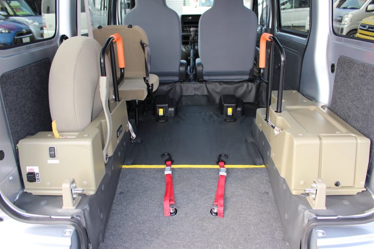 走行距離の少ないハイゼットです。車いすの方の隣に1名座れます!