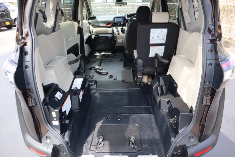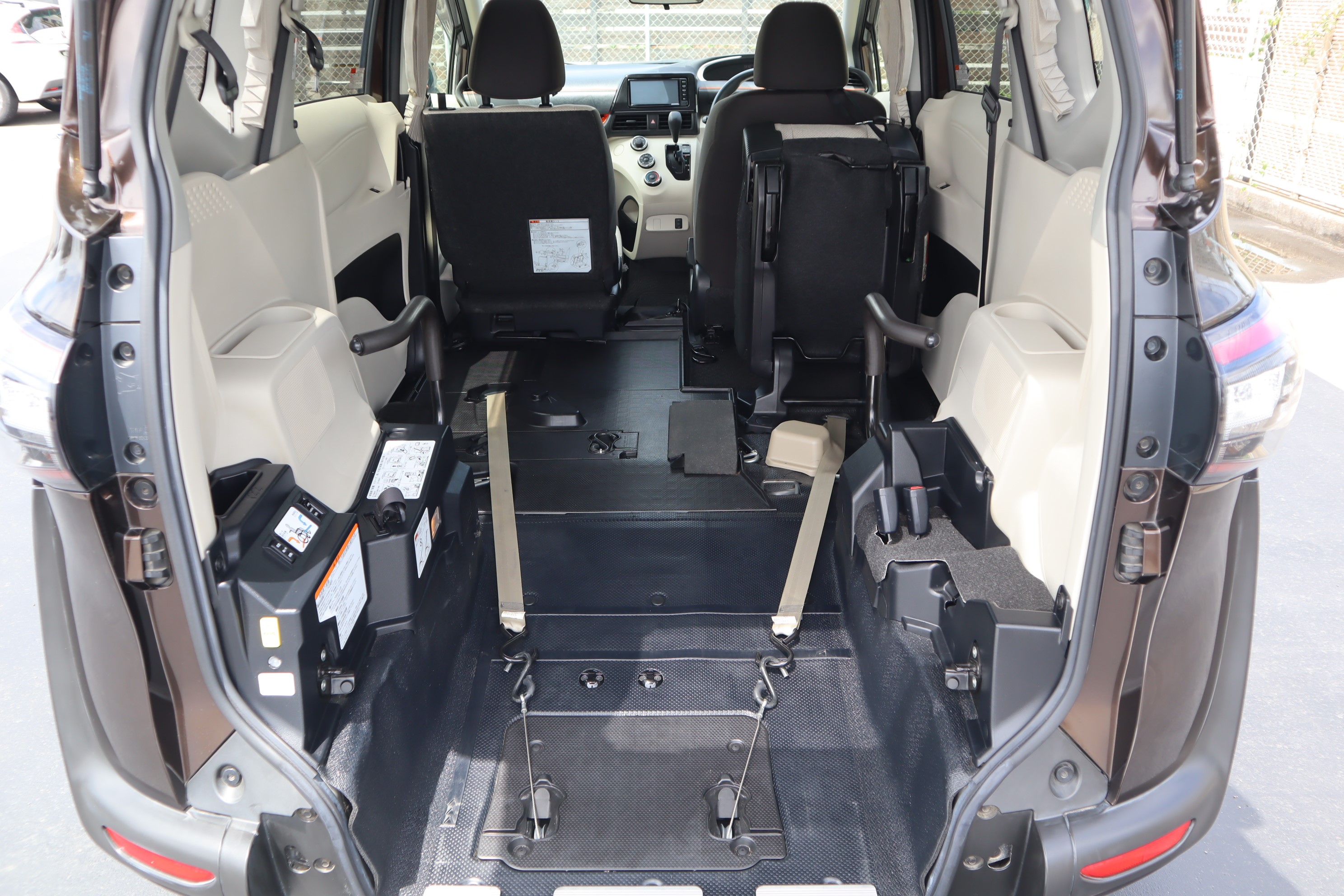 助手席を前方に跳ね上げると車いす固定装置が現れます。