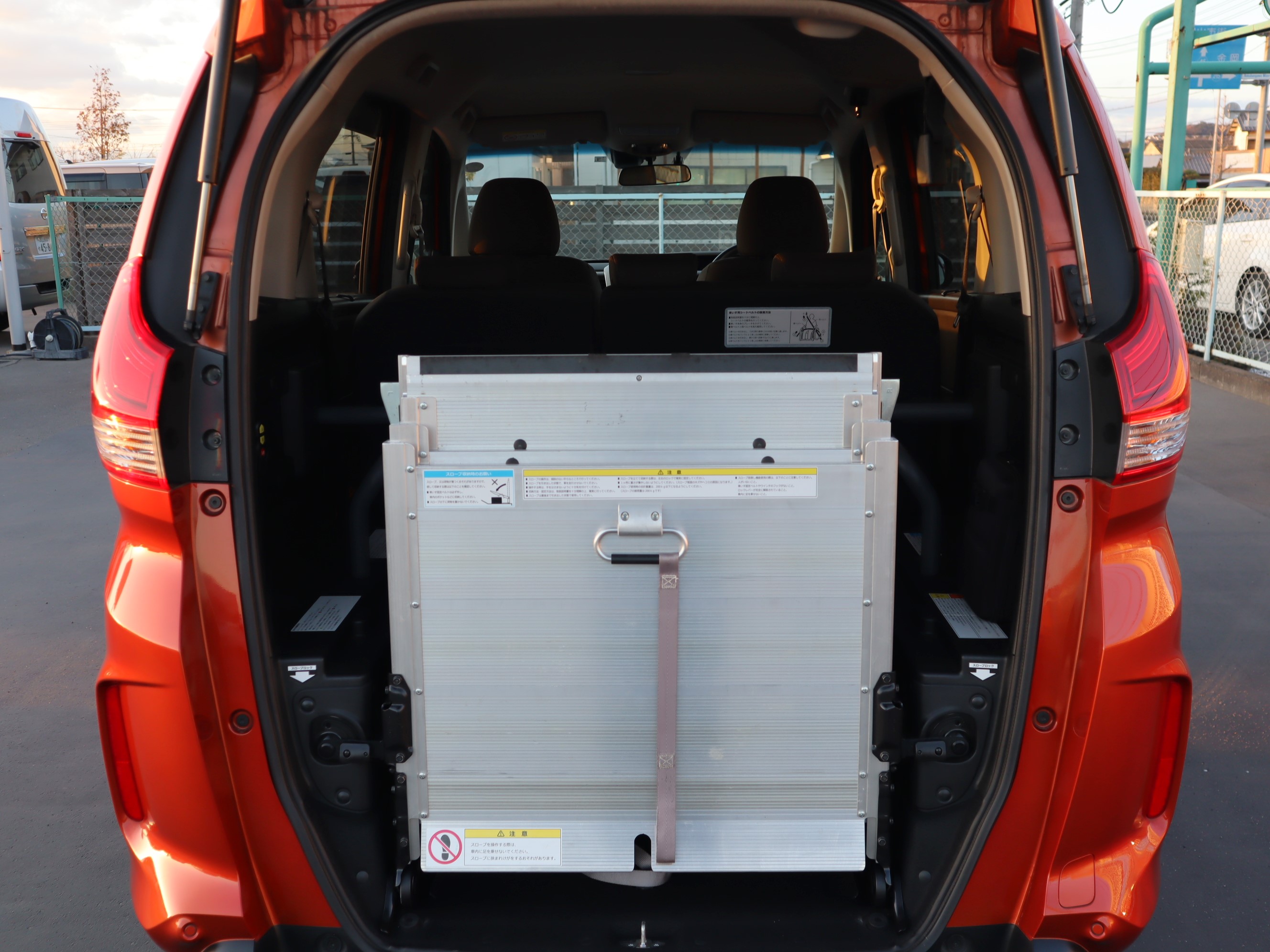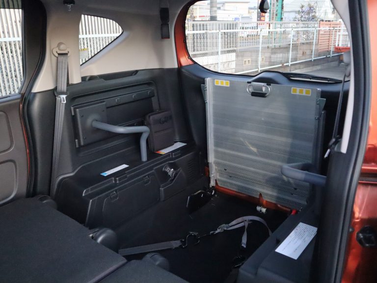 スロープ板を展開して車いすの方が入ります。車いすの方1名と他に5名の6人乗りになります。