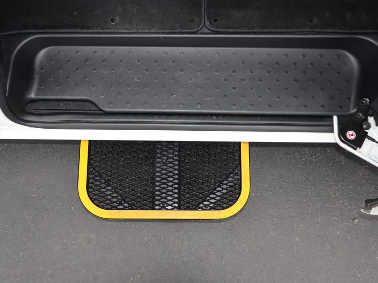 左右スライドドア(左側は電動スライドドア)です。電動ステップ、車内手すり付きです。