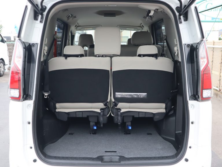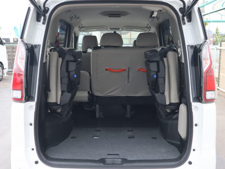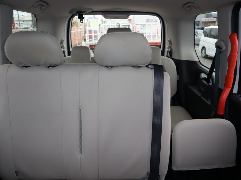 3列目シートは左右に跳ね上げることができます。2列目シートの裏にもグリップが付いています。