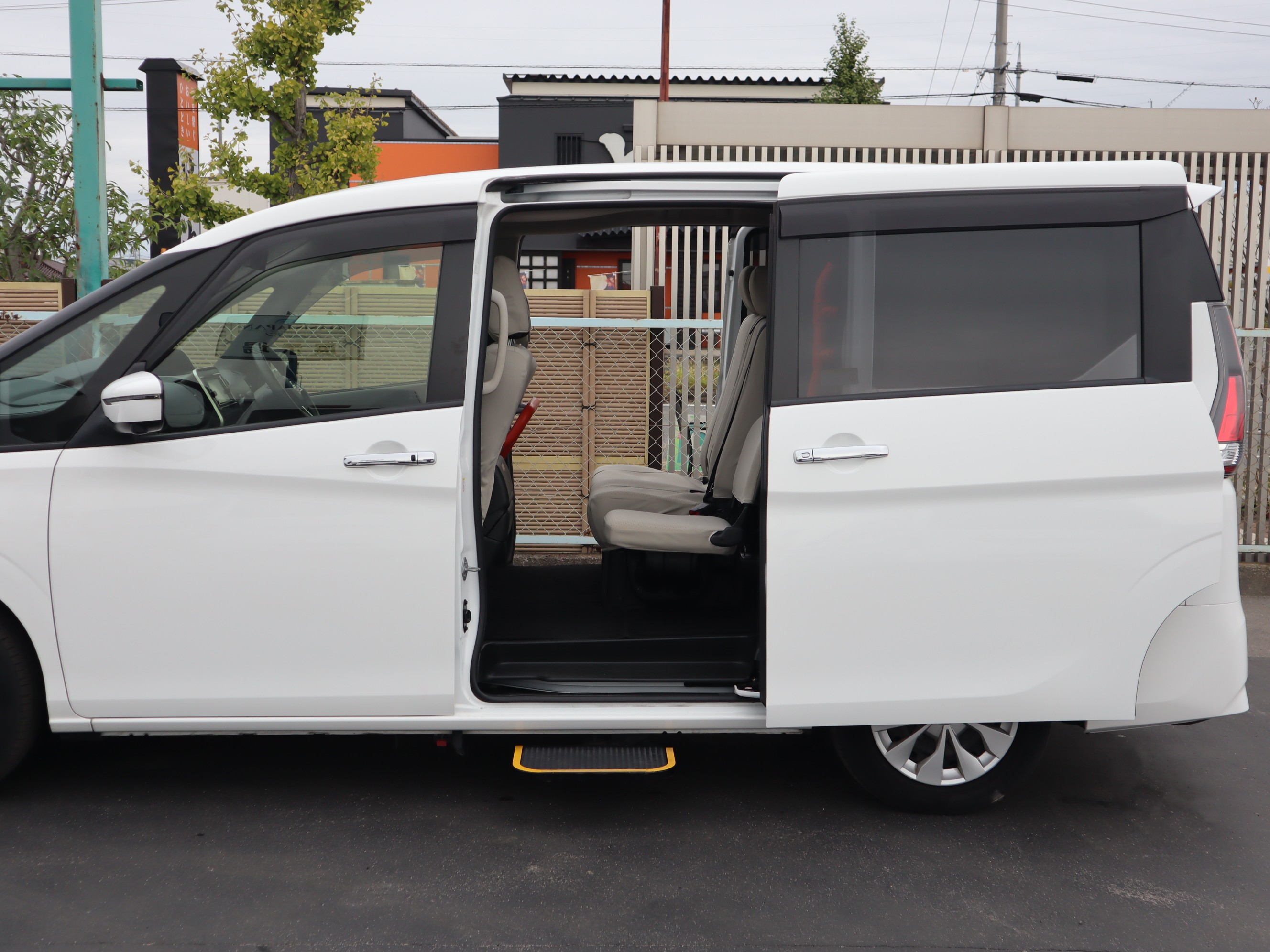 左右スライドドア(左側は電動スライドドア)です。電動ステップ、車内手すり付きです。