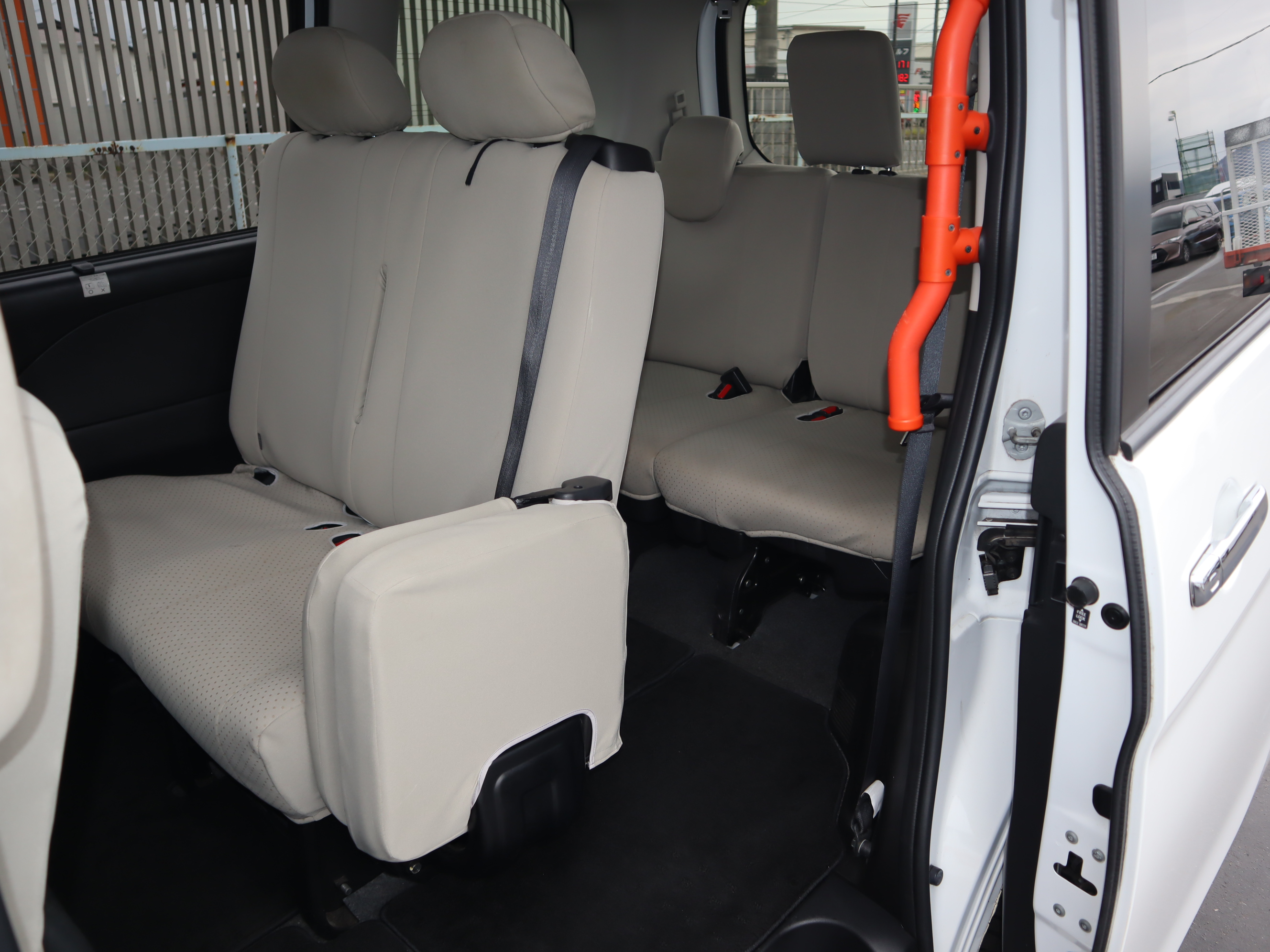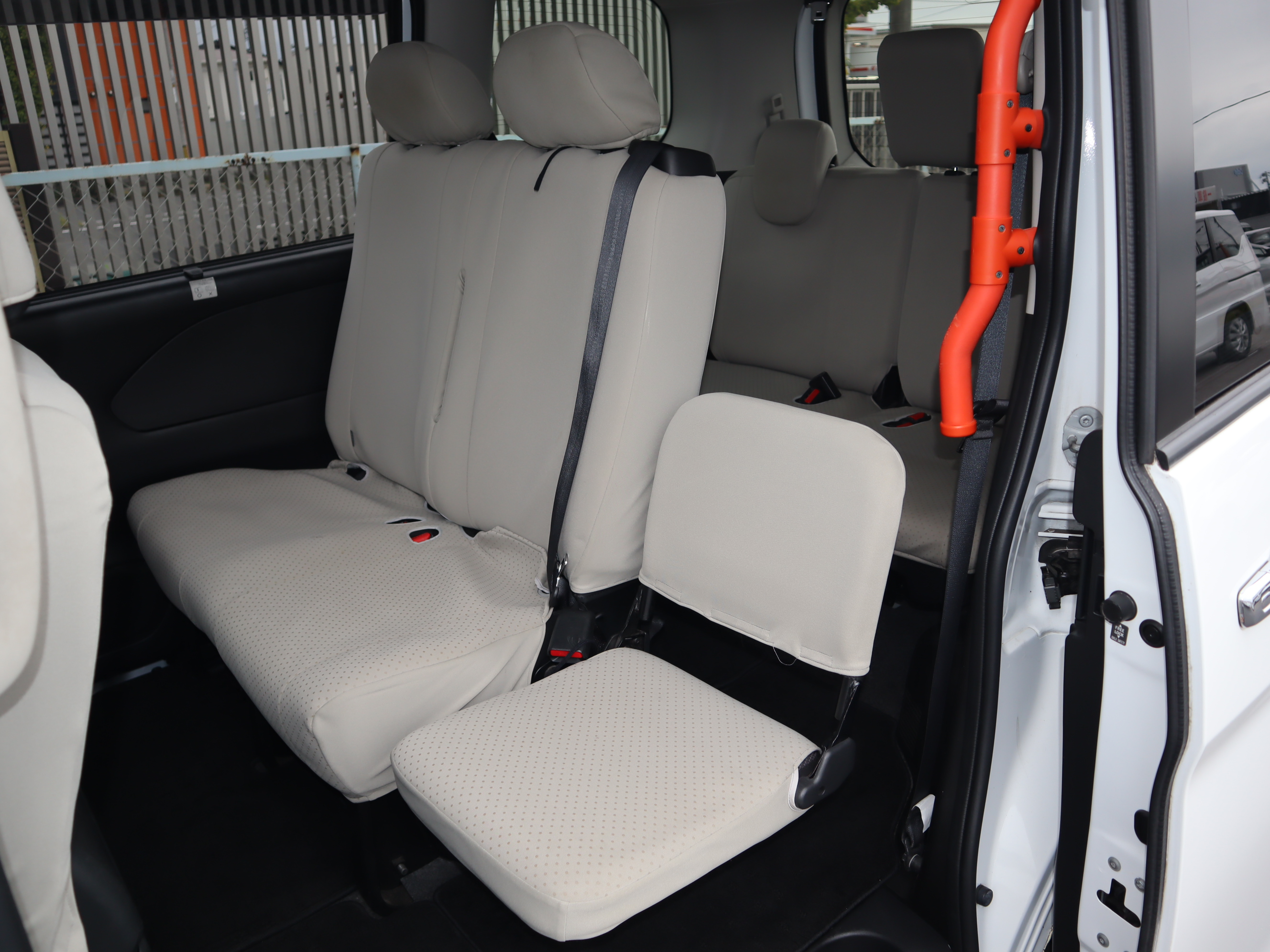 3列目シートは左右に跳ね上げることができます。2列目シートの裏にもグリップが付いています。