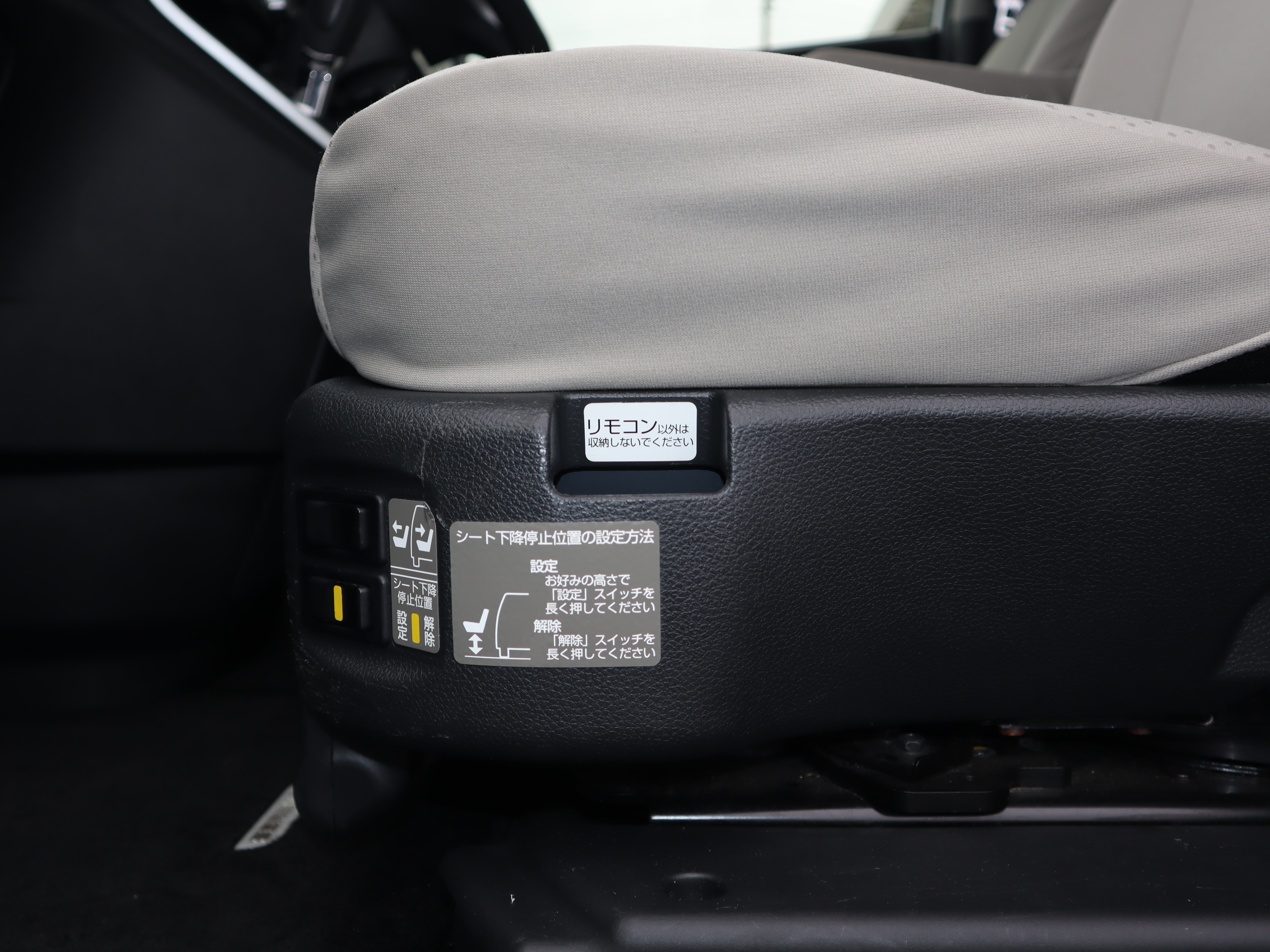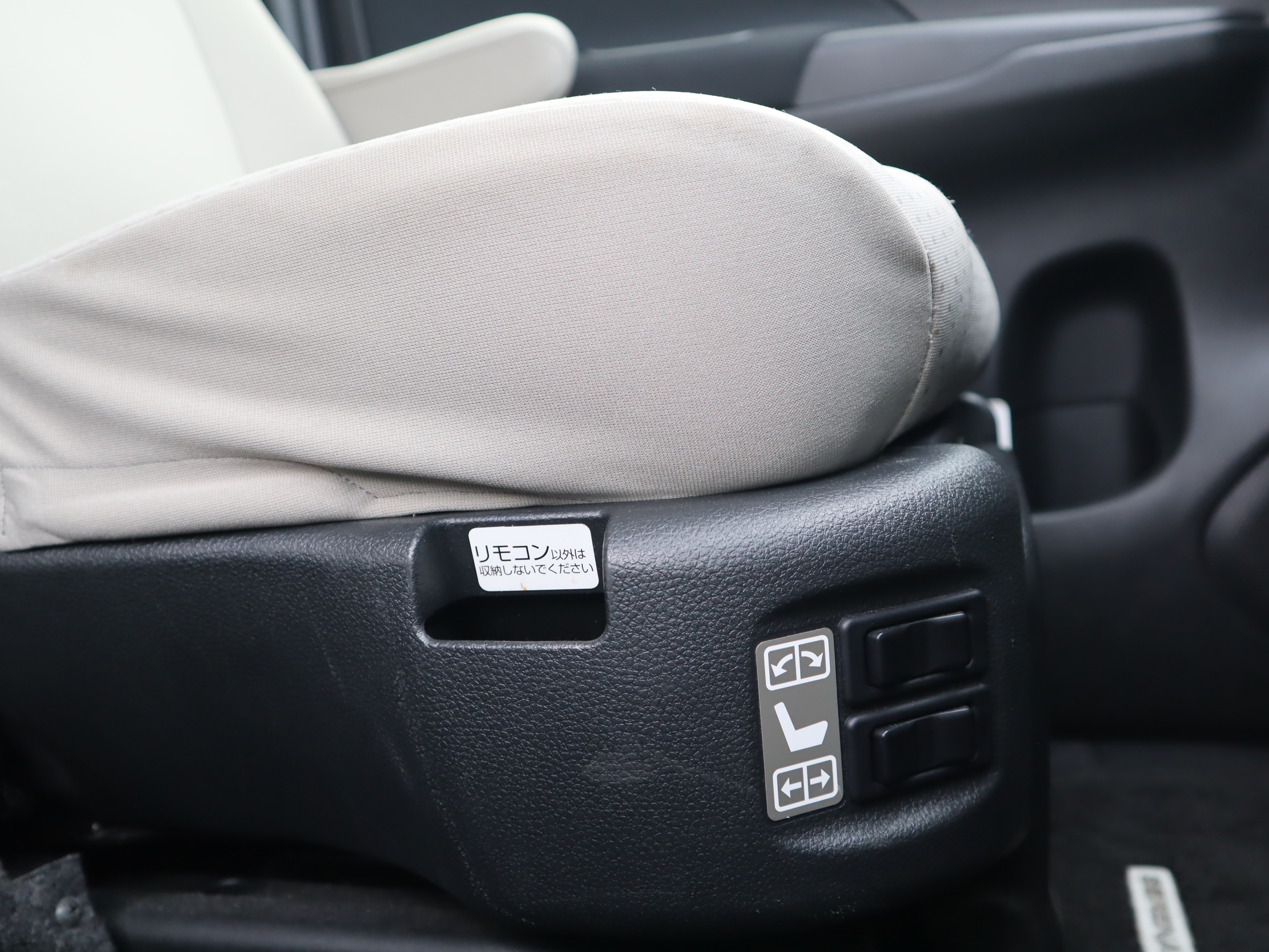 助手席の回転と昇降は、シート左のスイッチで操作します。助手席スライドアップシートのリモコンは付属しておりません。詳しくはお問い合わせください。