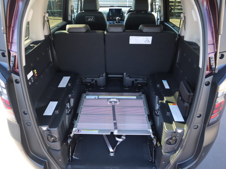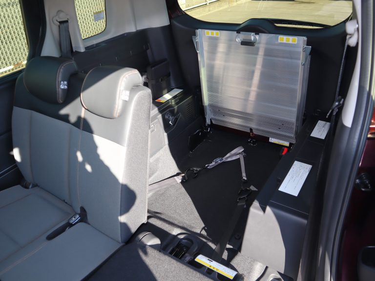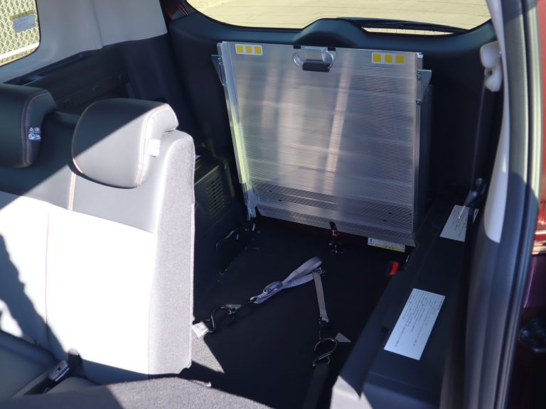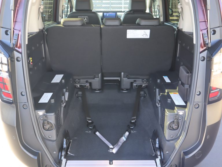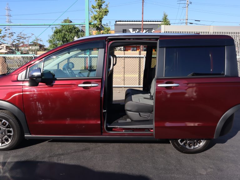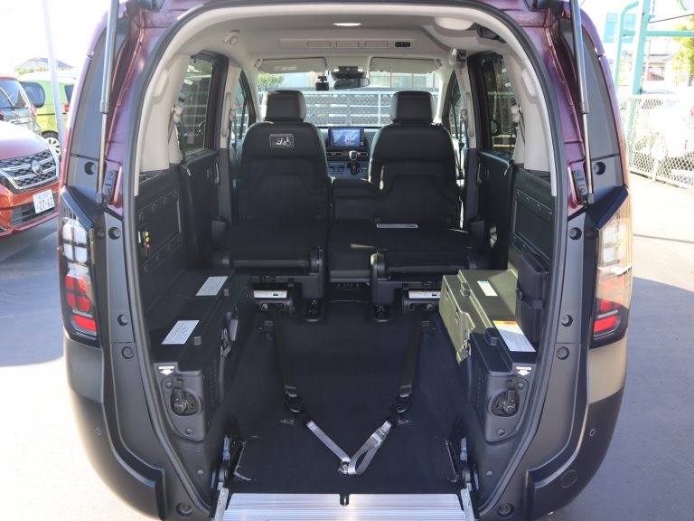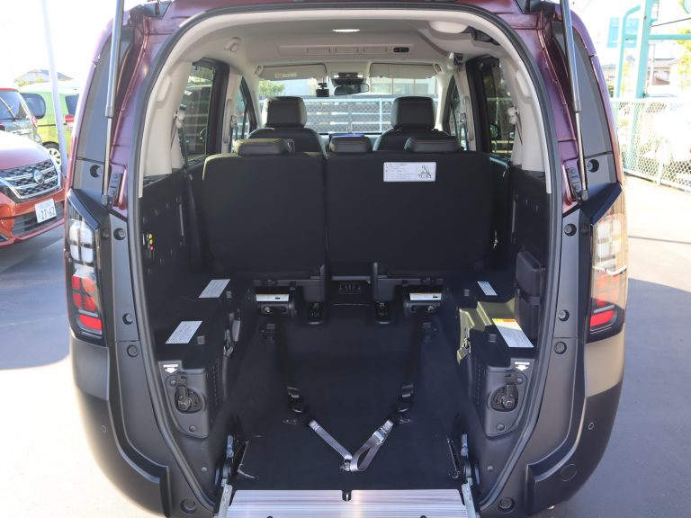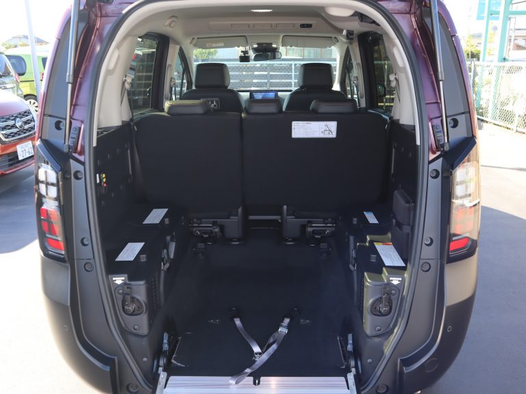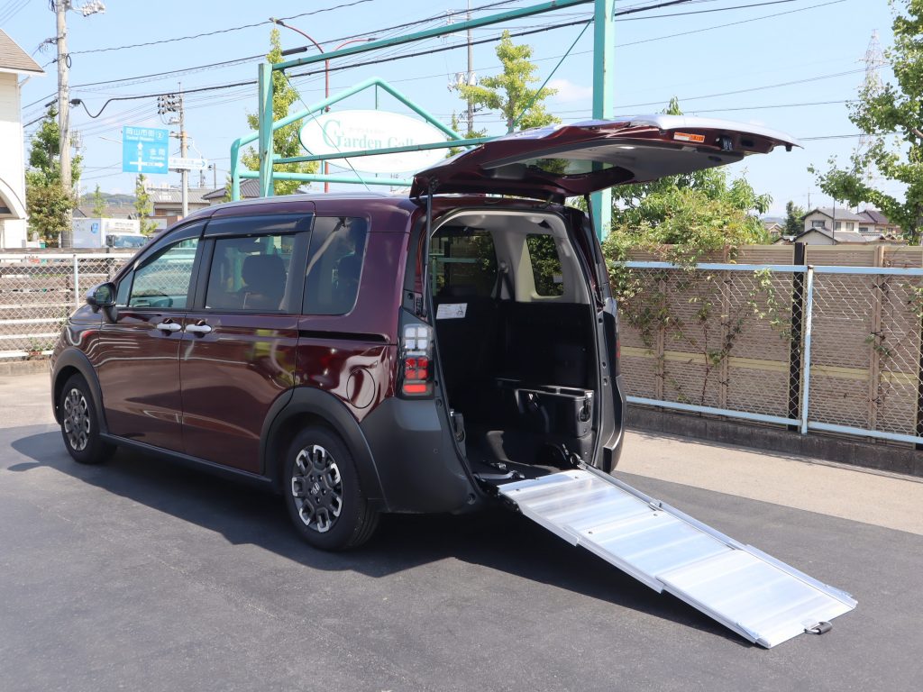 車いすの方の他に5名乗車できます。オシャレなワインレッドのフリードクロスター車いすスロープ車です!