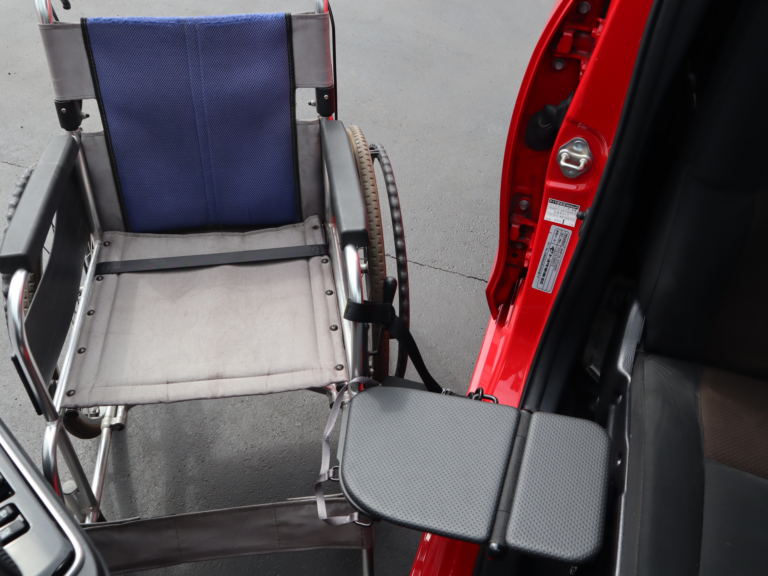 運転席はパワーシートになっています。移乗ボードを収納した状態です。