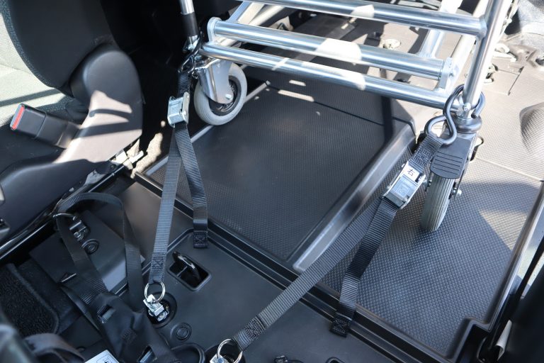 1.5列目まで車いす(主にお子様向け)が乗り入れられ、運転席から手が届き安心です。しかも高さ調整式ストレッチャー付きです!