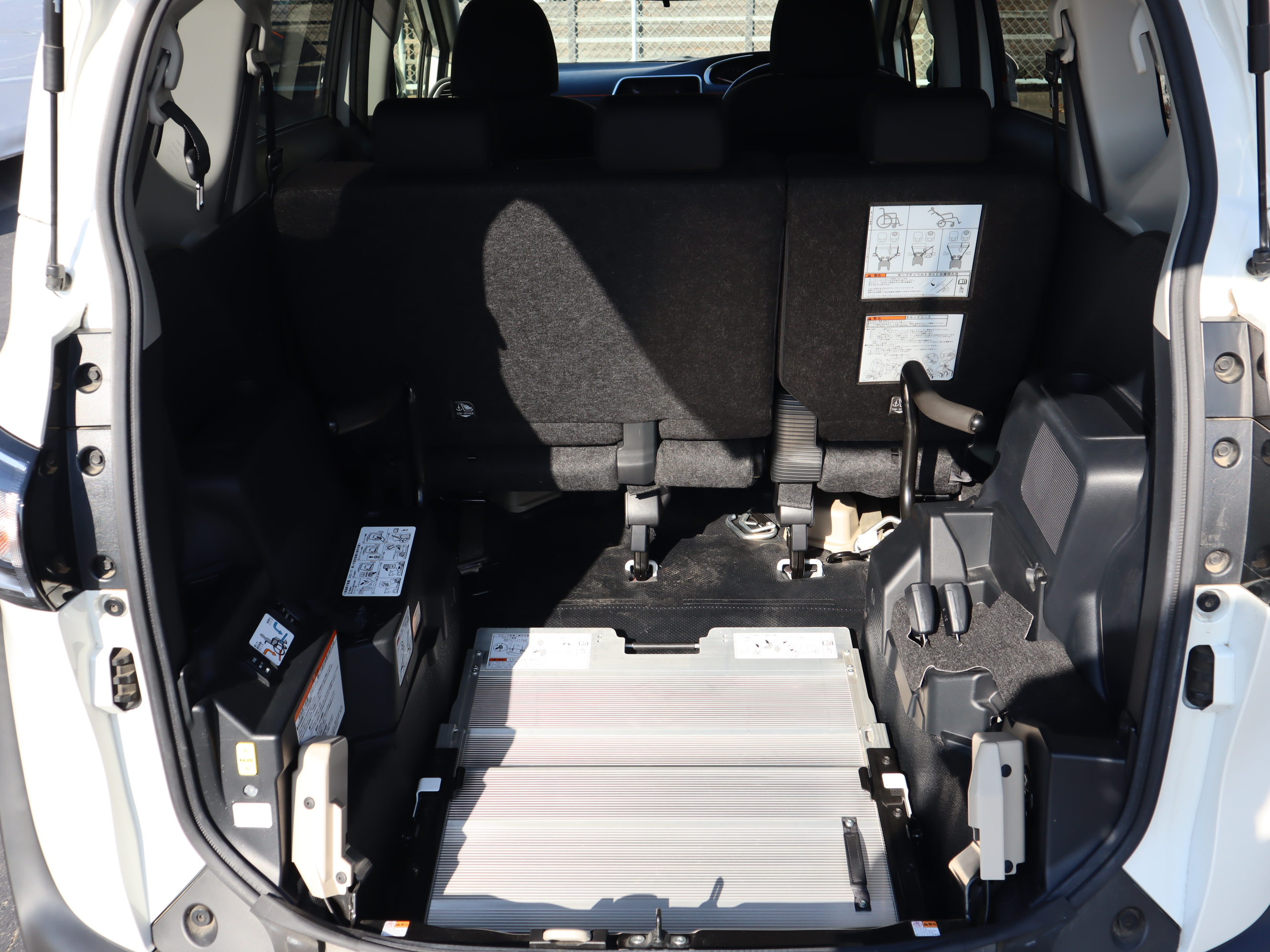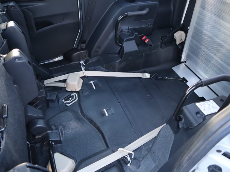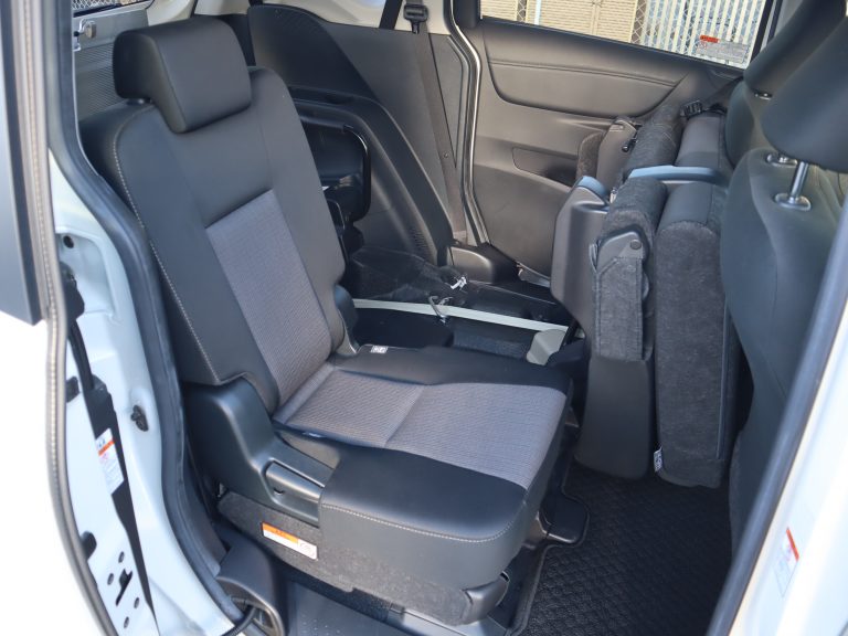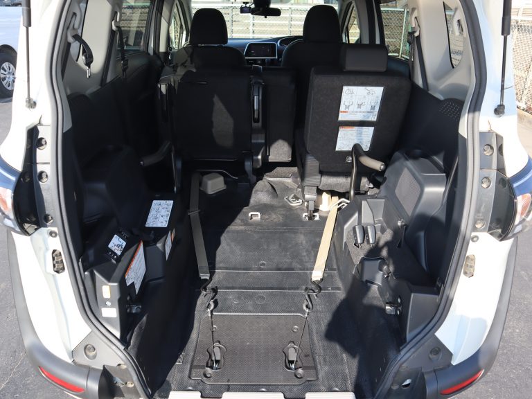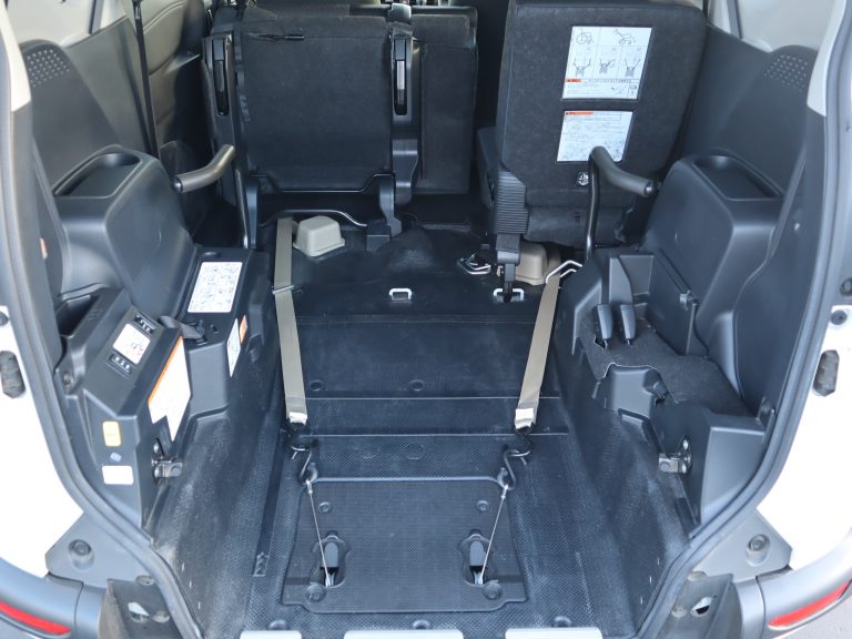 後ろの車高が下がるので、車いすのまま乗り込みやすくなります。車いすの方の隣に1名座れます。