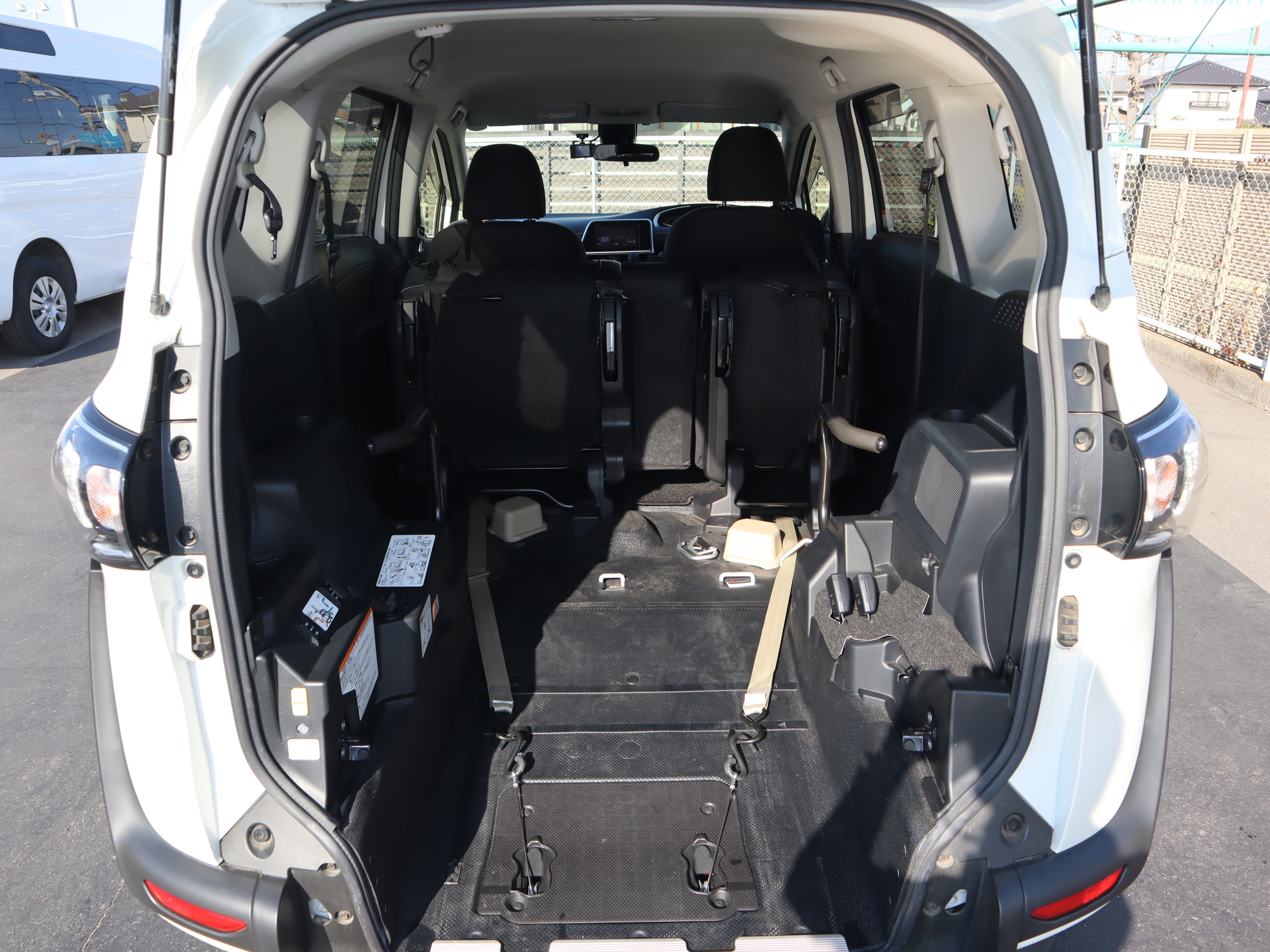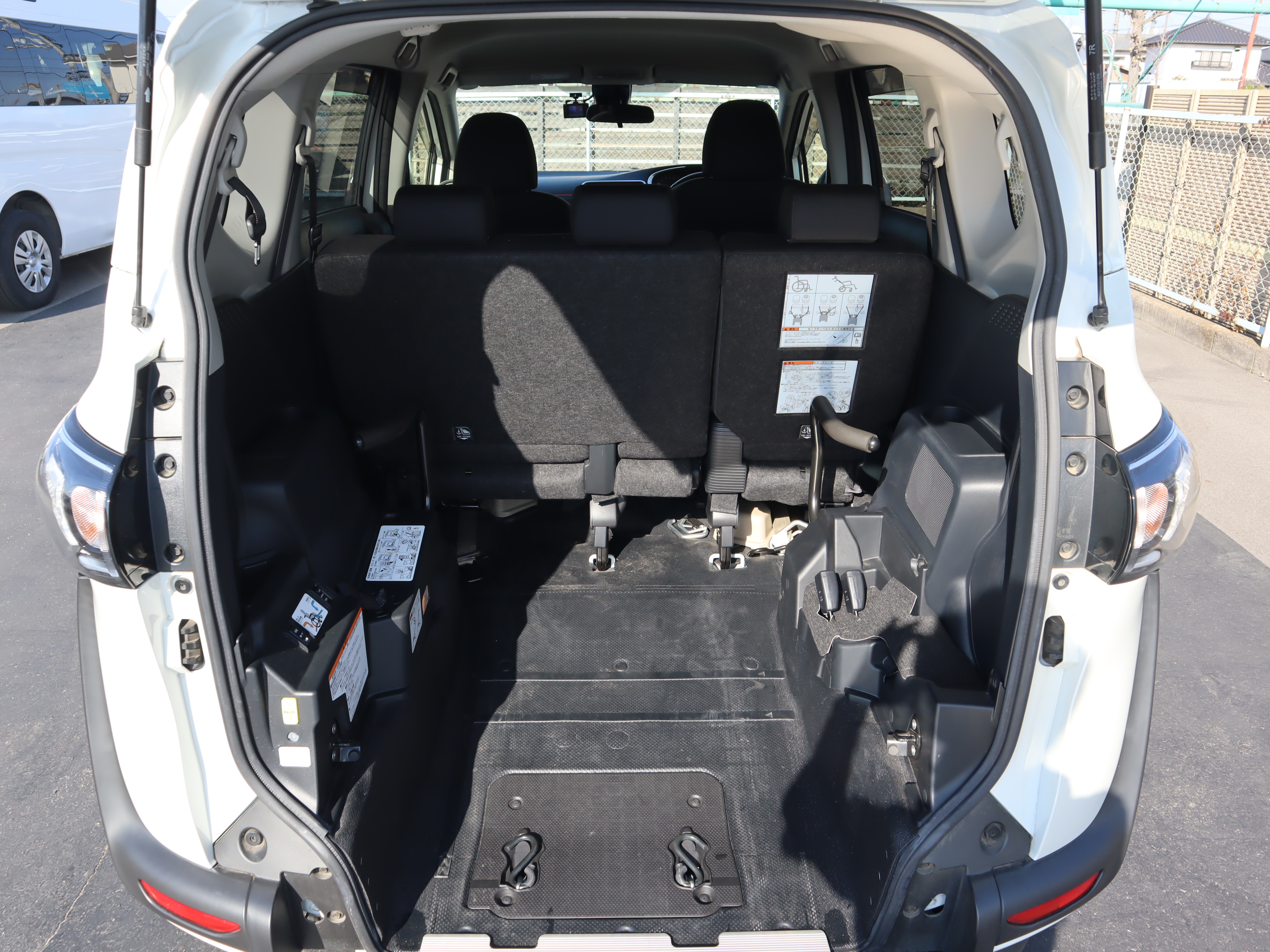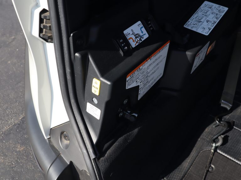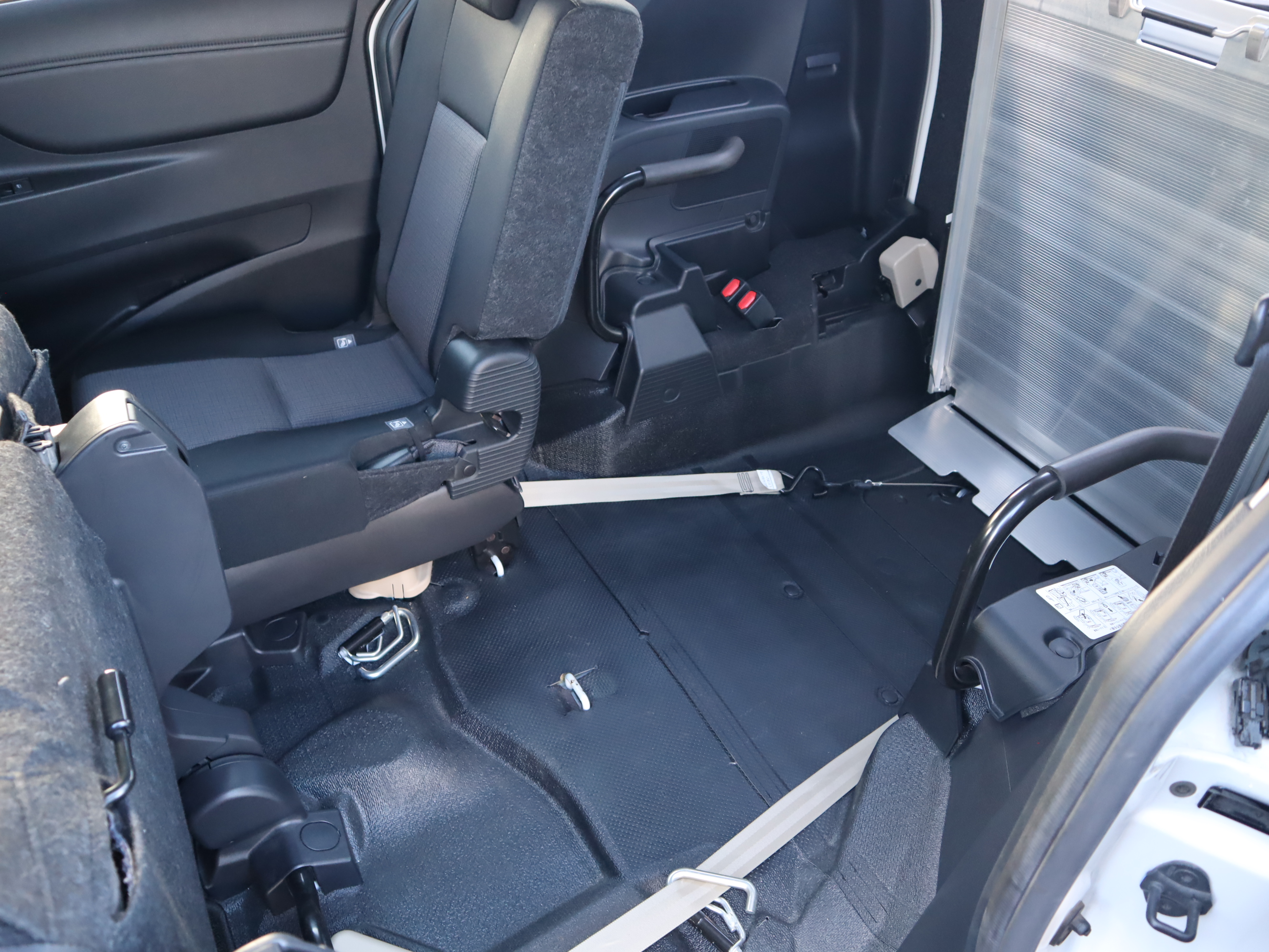 後ろの車高が下がるので、車いすのまま乗り込みやすくなります。車いすの方の隣に1名座れます。