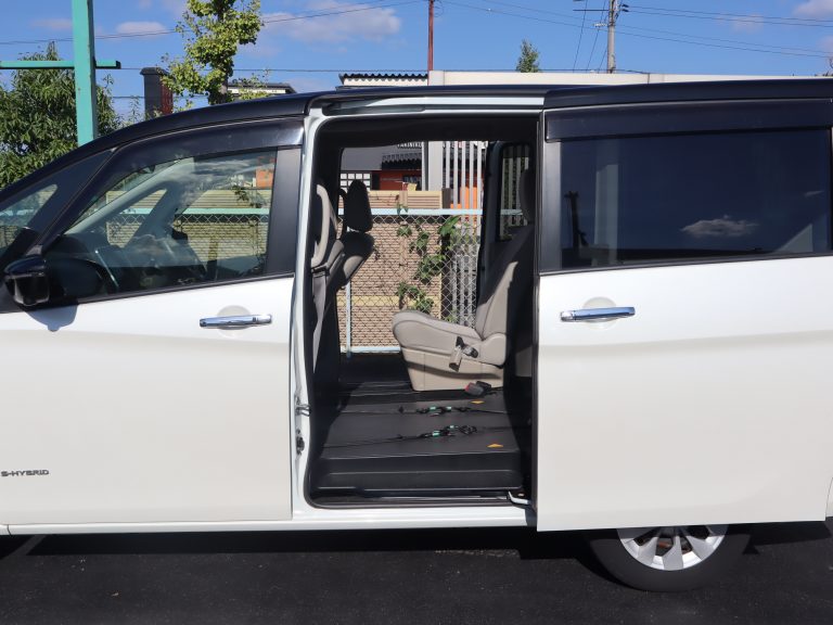 オシャレなツートンカラーのセレナ X車いすスロープ車です。後ろの車高が下がるので、車いすの方が乗り込みやすくなります♪
