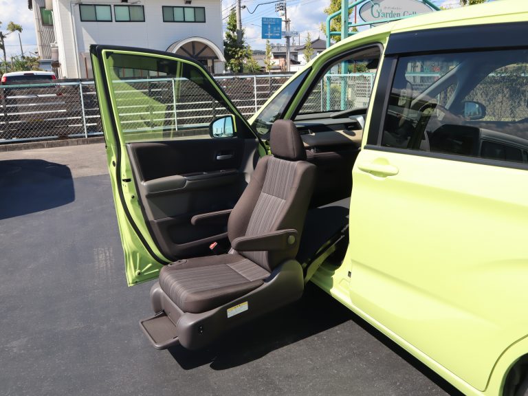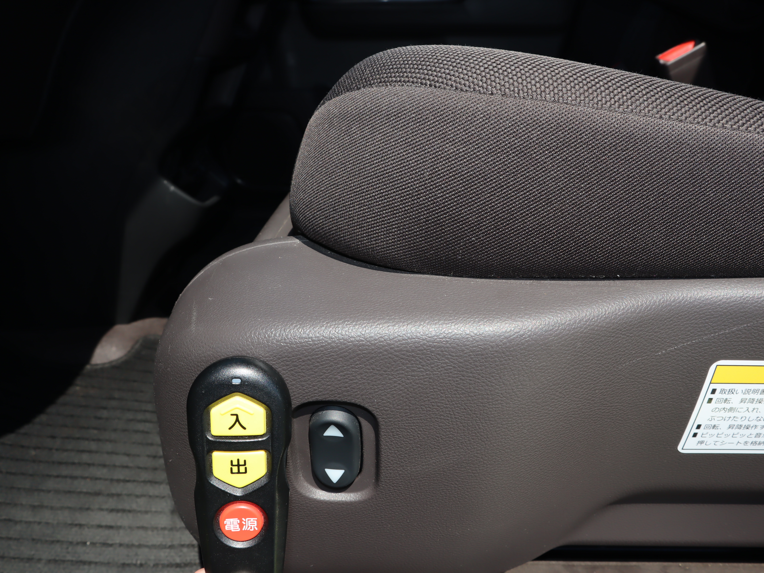 助手席の回転と昇降は、シート左のスイッチかリモコンで操作します。