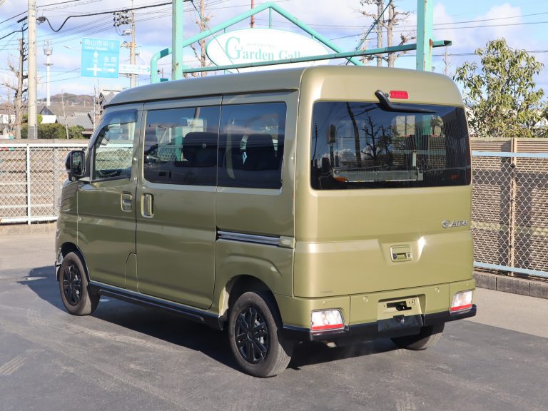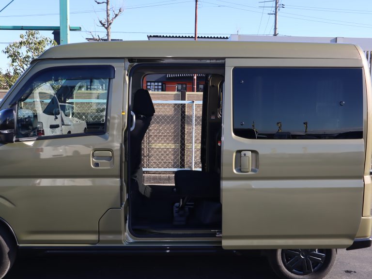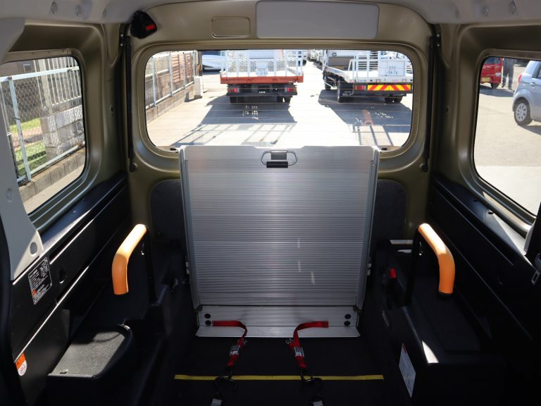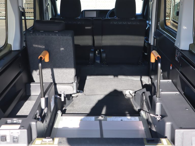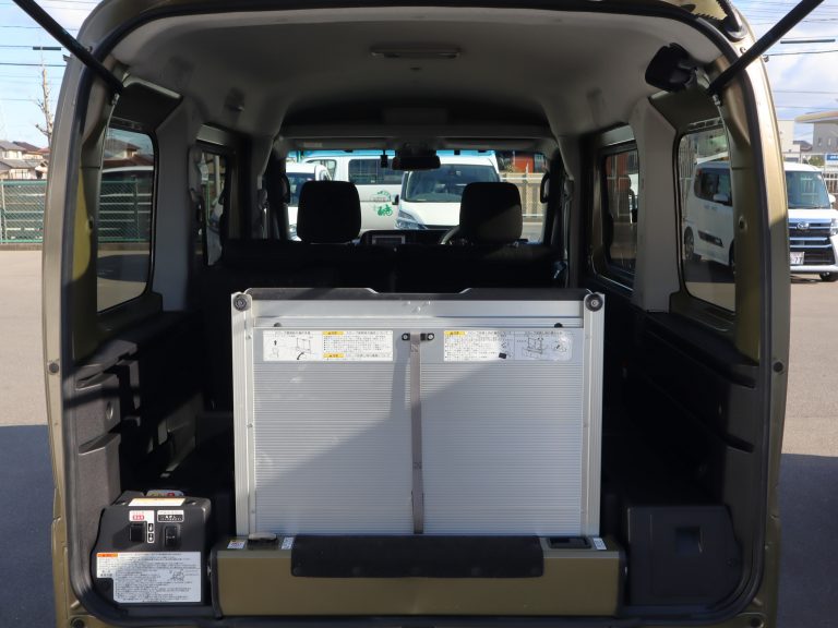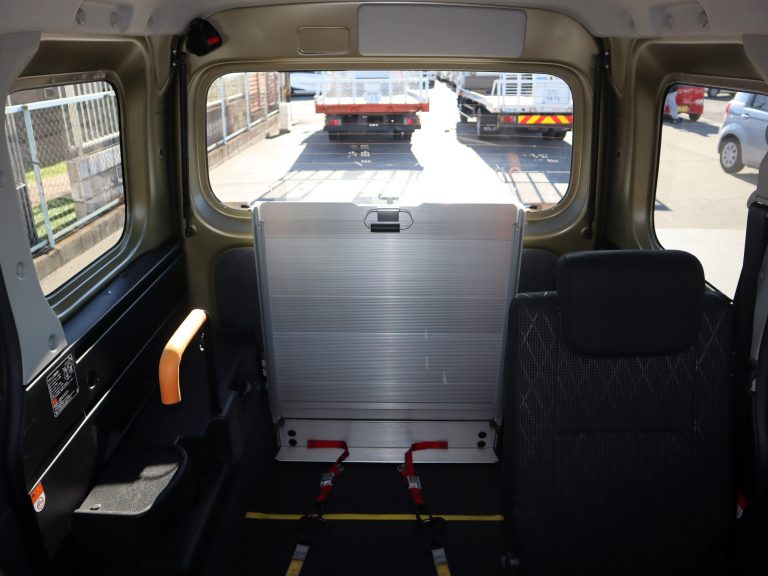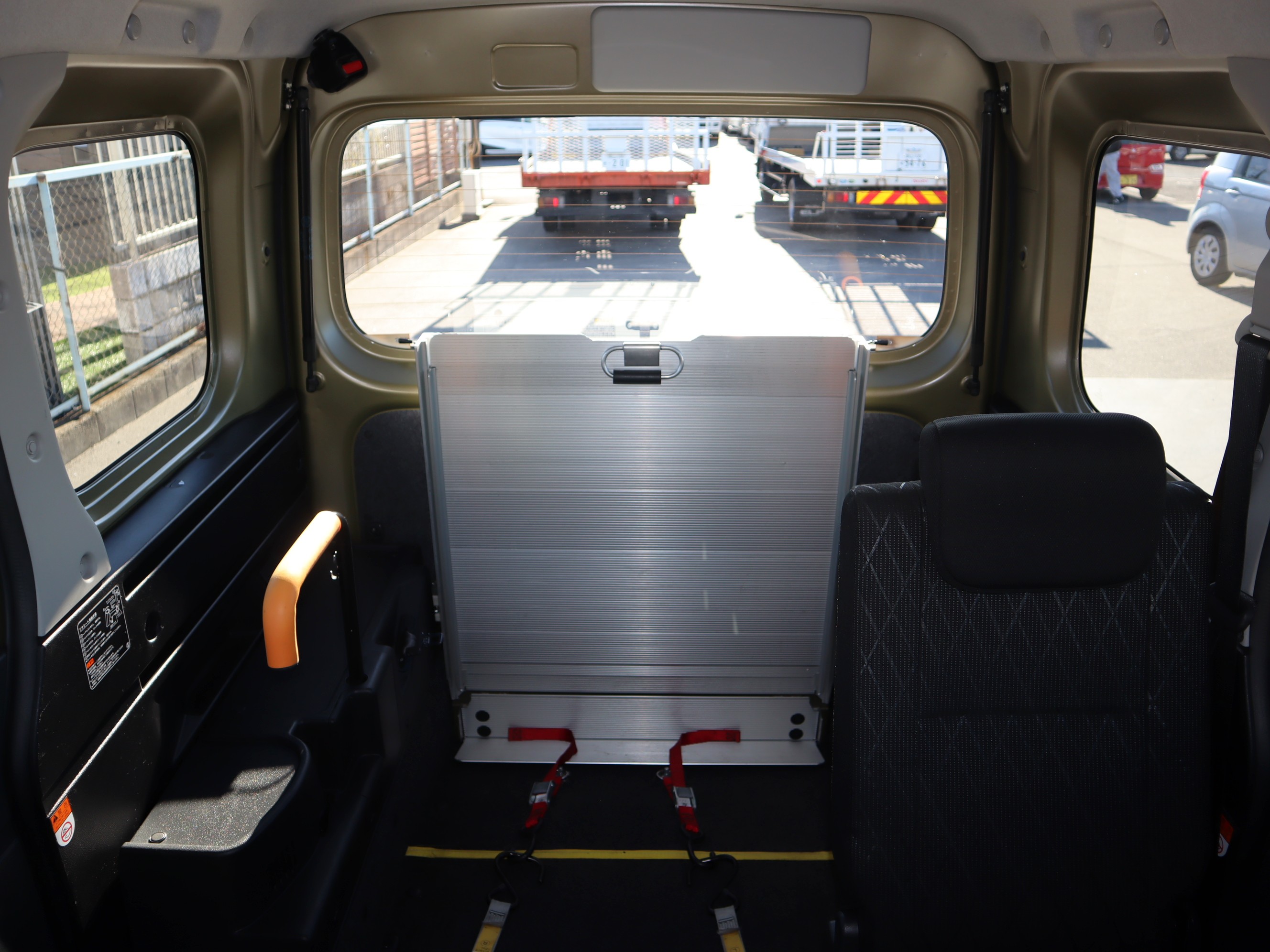 スロープ板を展開した状態です。車いすの方1名と他に3名の4人乗りです。