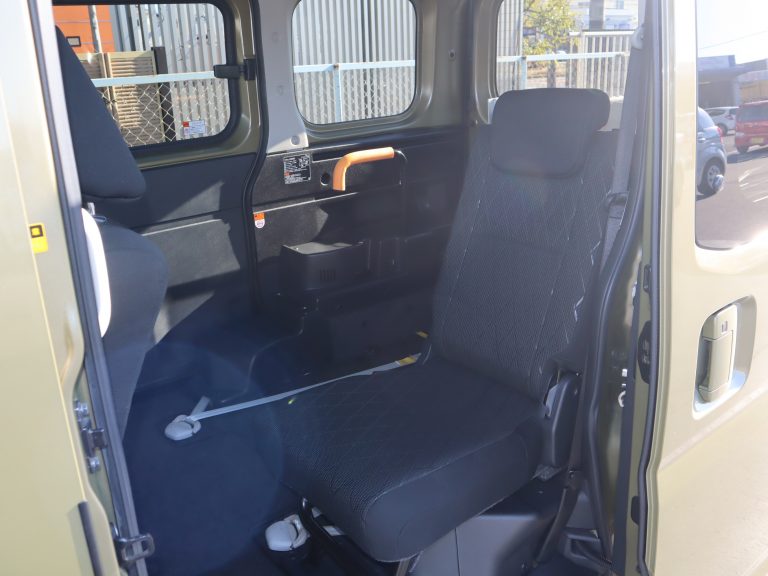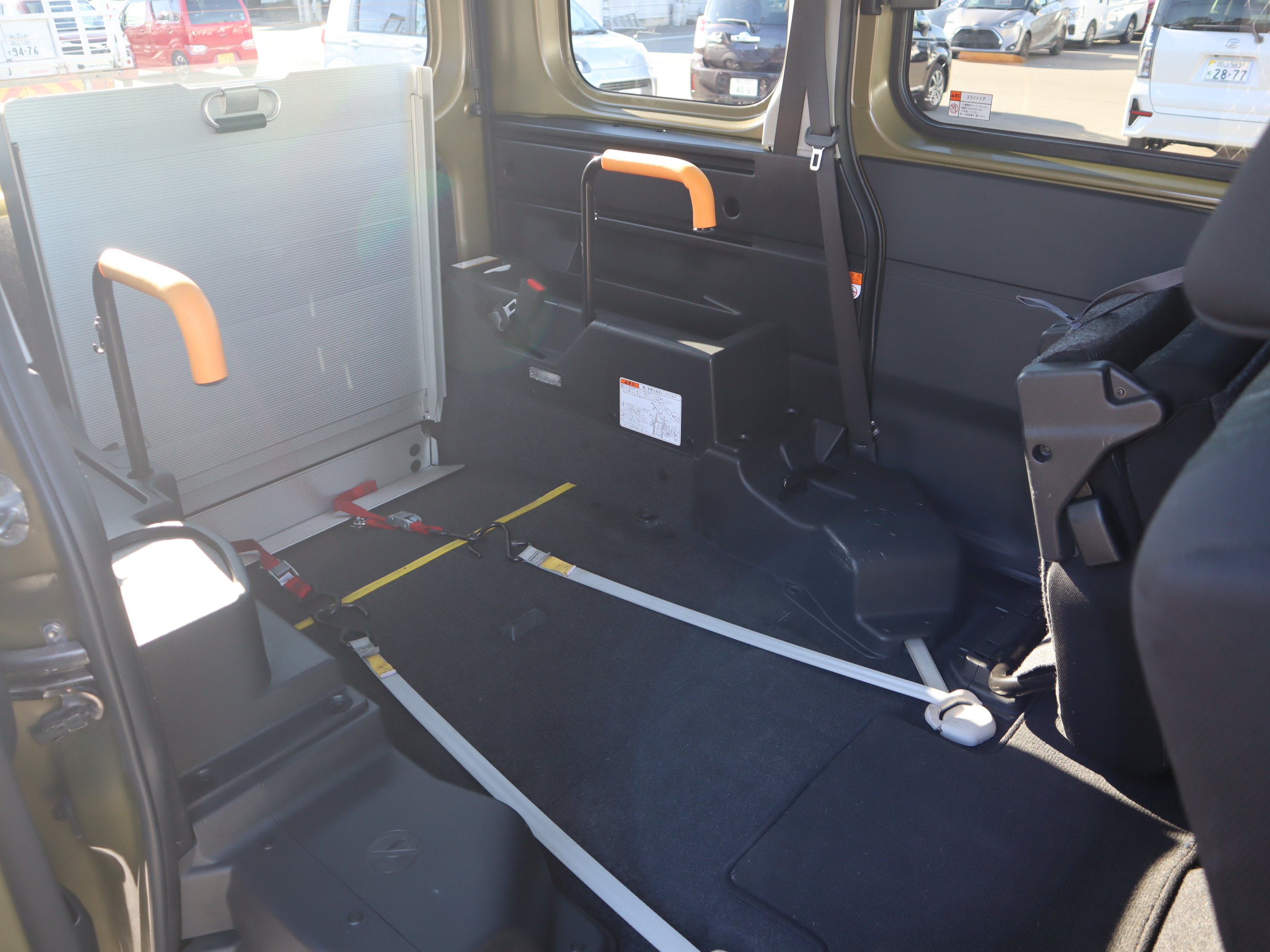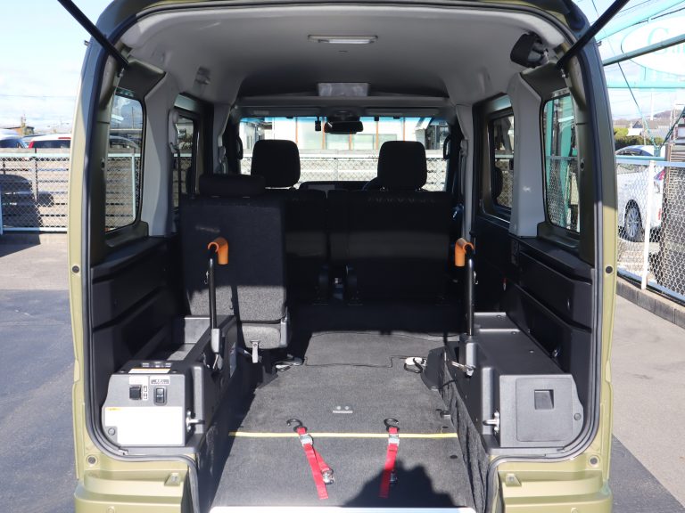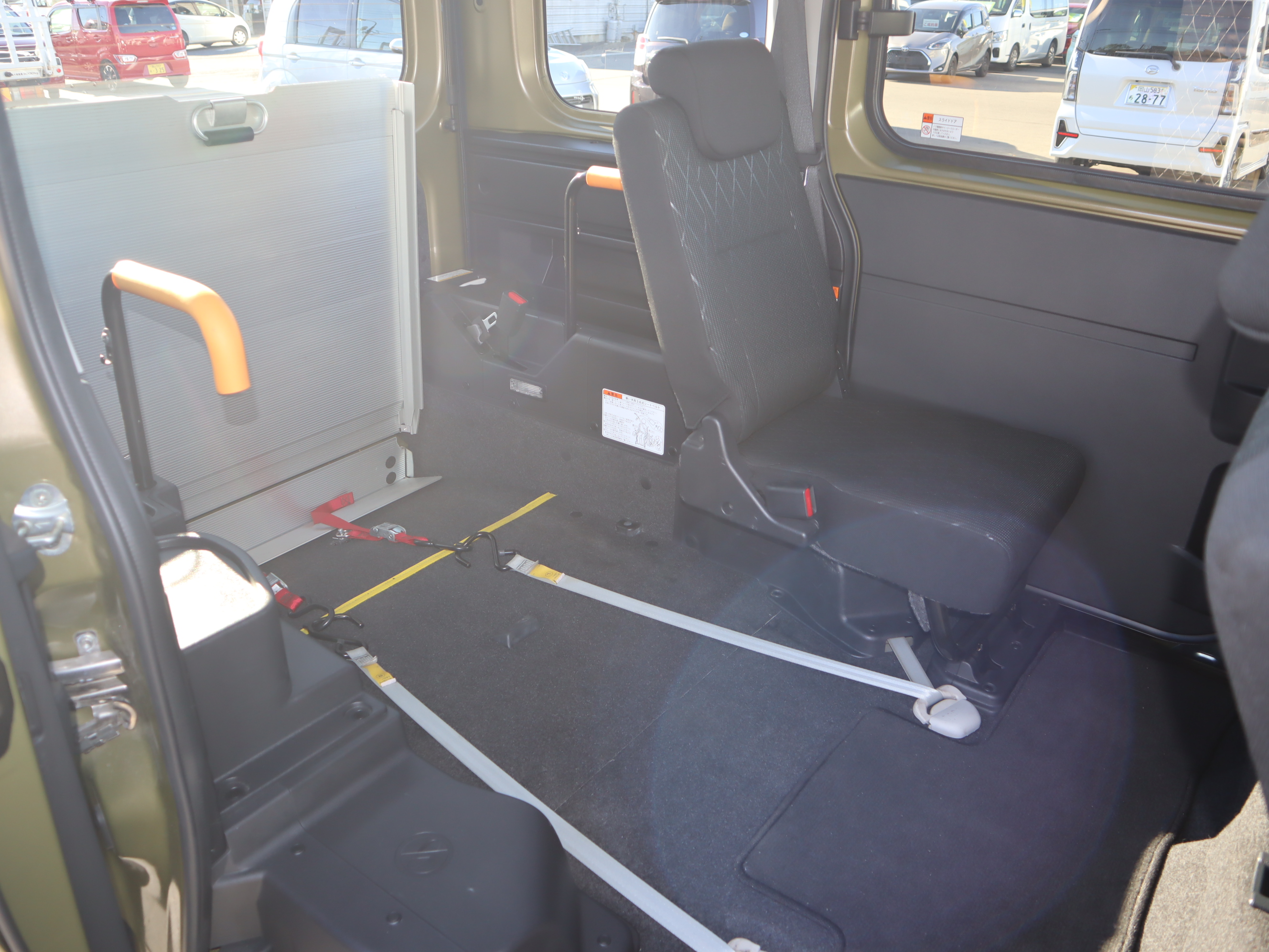 リヤシートを跳ね上げた状態です。車いすの方1名と他に2名の3人乗りになります。