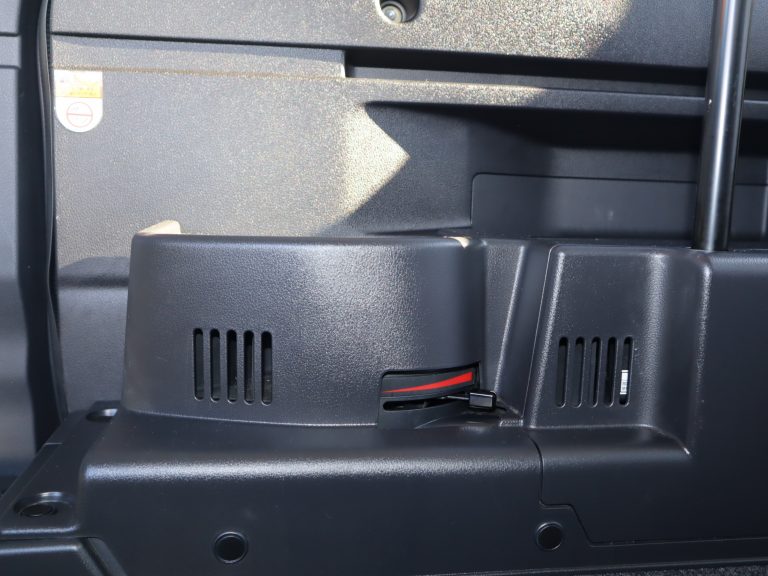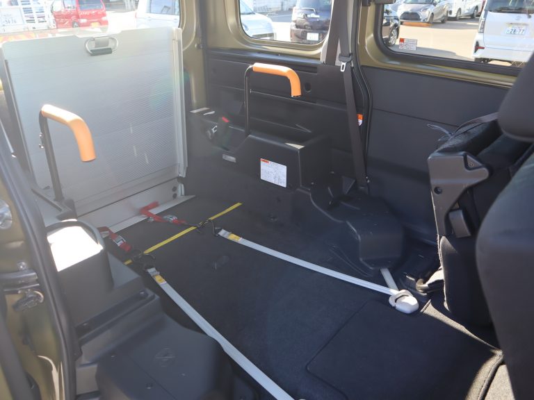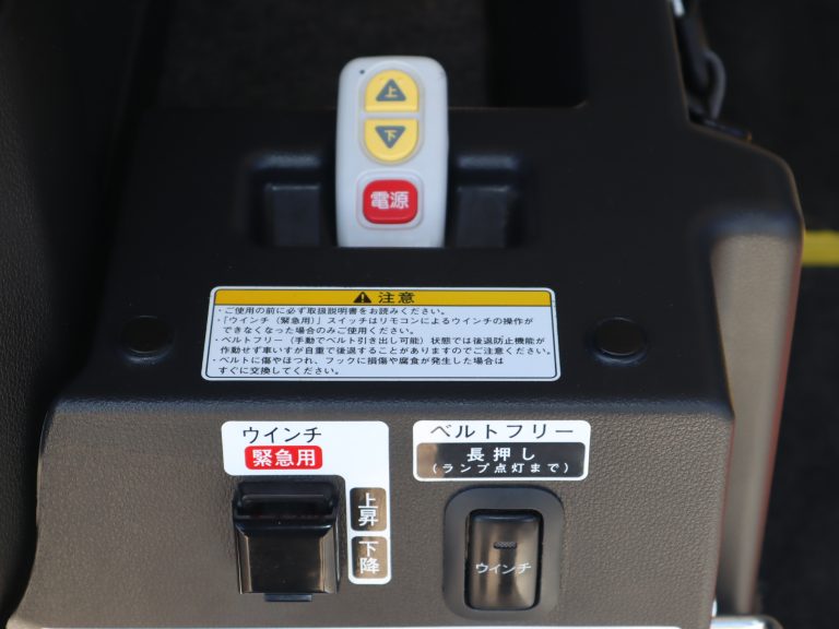 前側がウィンチベルトになっています。車いすを引っ張り上げてくれます。車いすスペース用マット付きです。