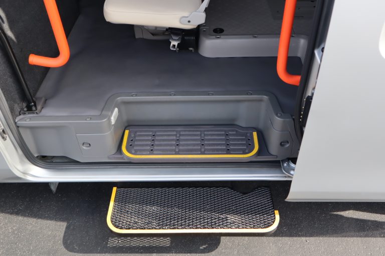 衝突被害軽減ブレーキ付きのキャラバンです。出てくる手すり付きです。