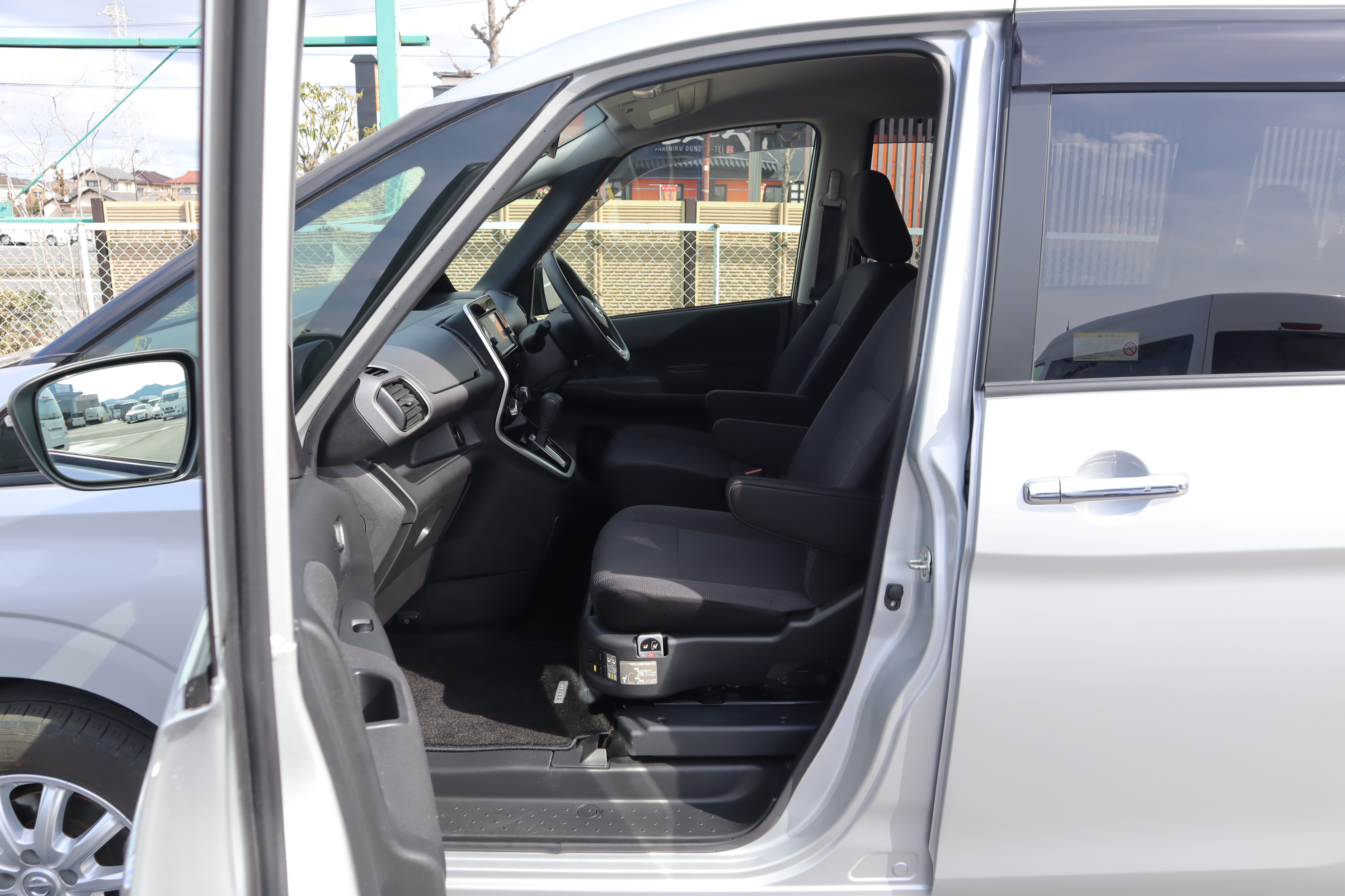 助手席が電動で回転・昇降します。