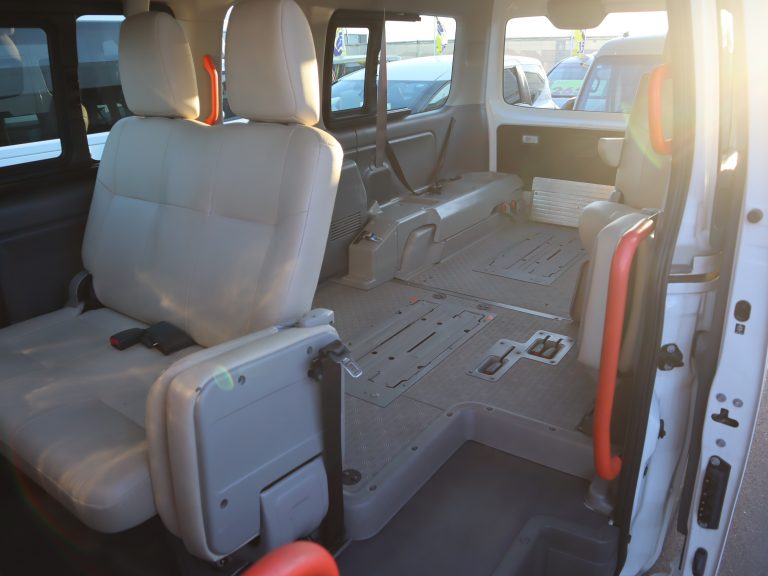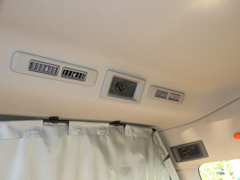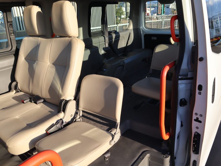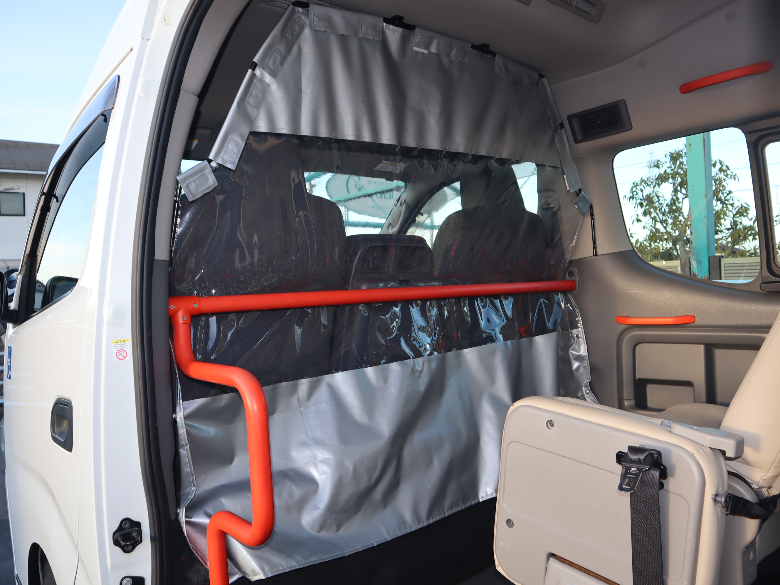 1列目と2列目の間には長い手すりが付いています。仕切りカーテン(フロント用)付きです。
