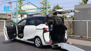 後ろの車高が下がるので、車いすのまま乗り込みやすくなります♪