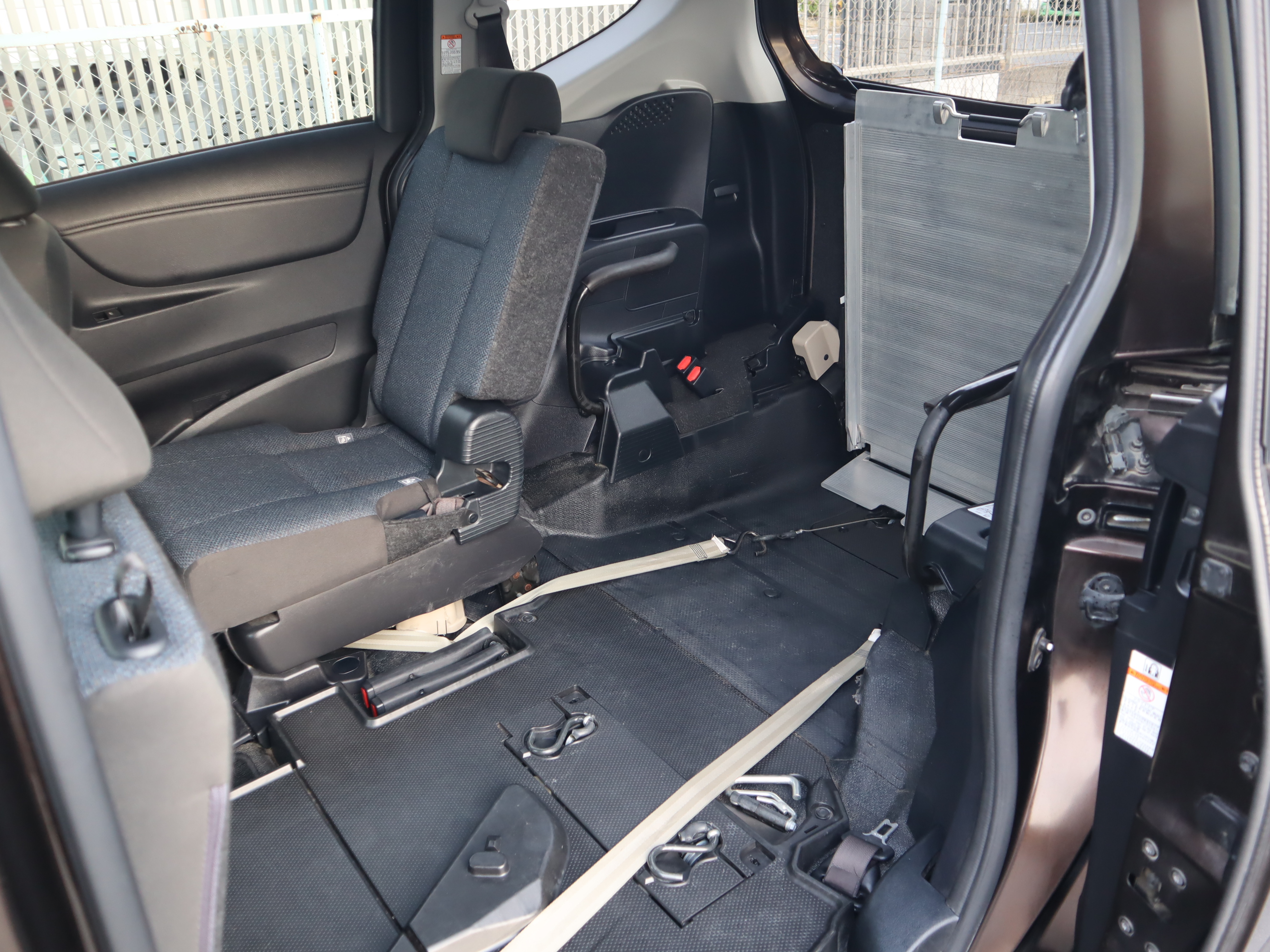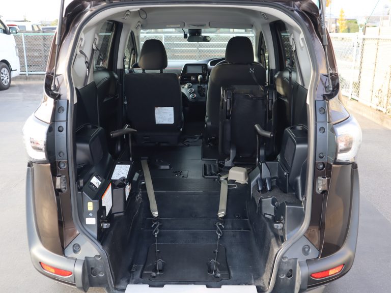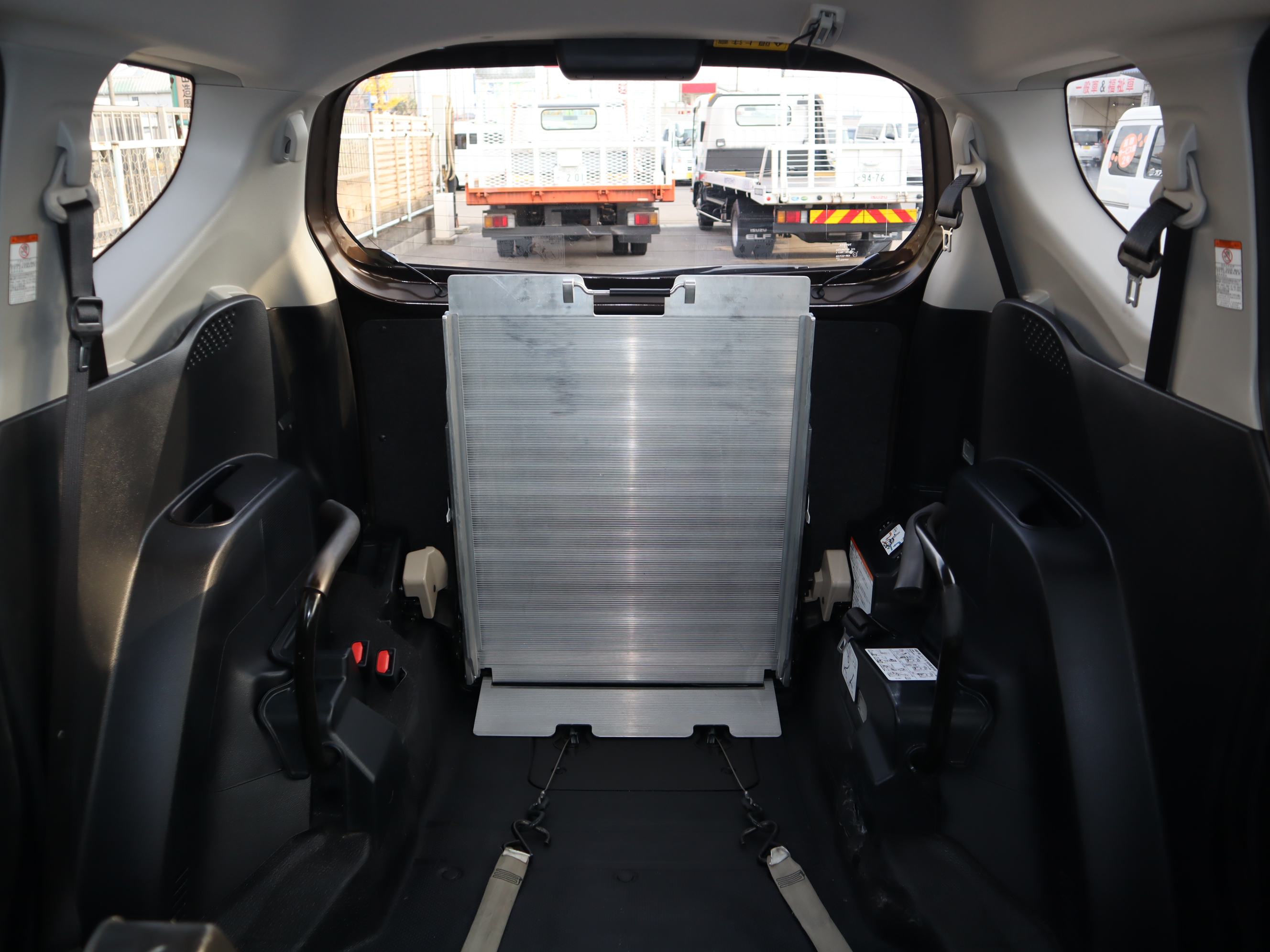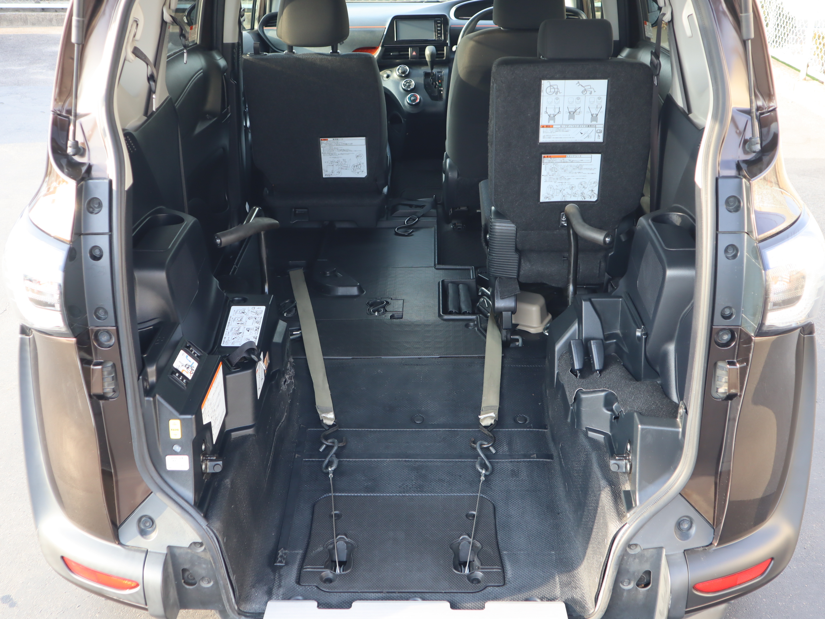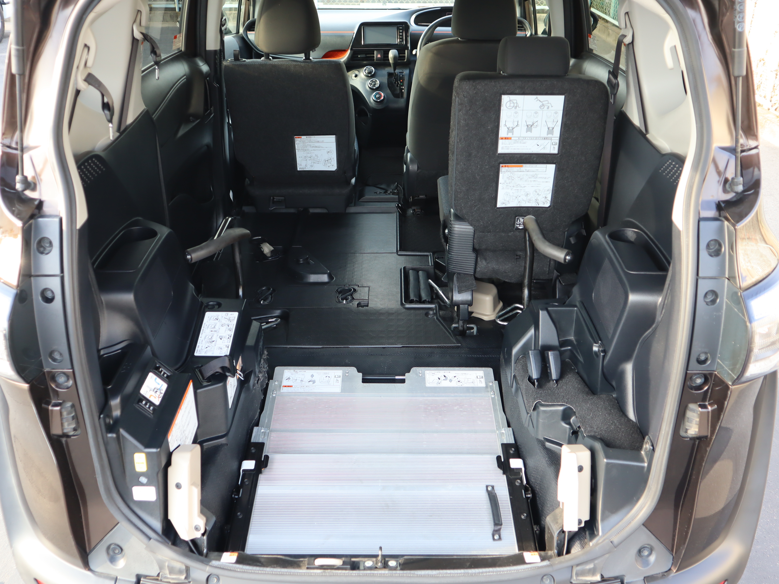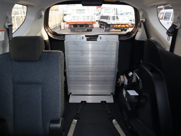 後ろの車高が下がるので、車いすのまま乗り込みやすくなります♪1.5列目まで車いす(主にお子様向け)が乗り入れられ、運転席から手が届き安心です。