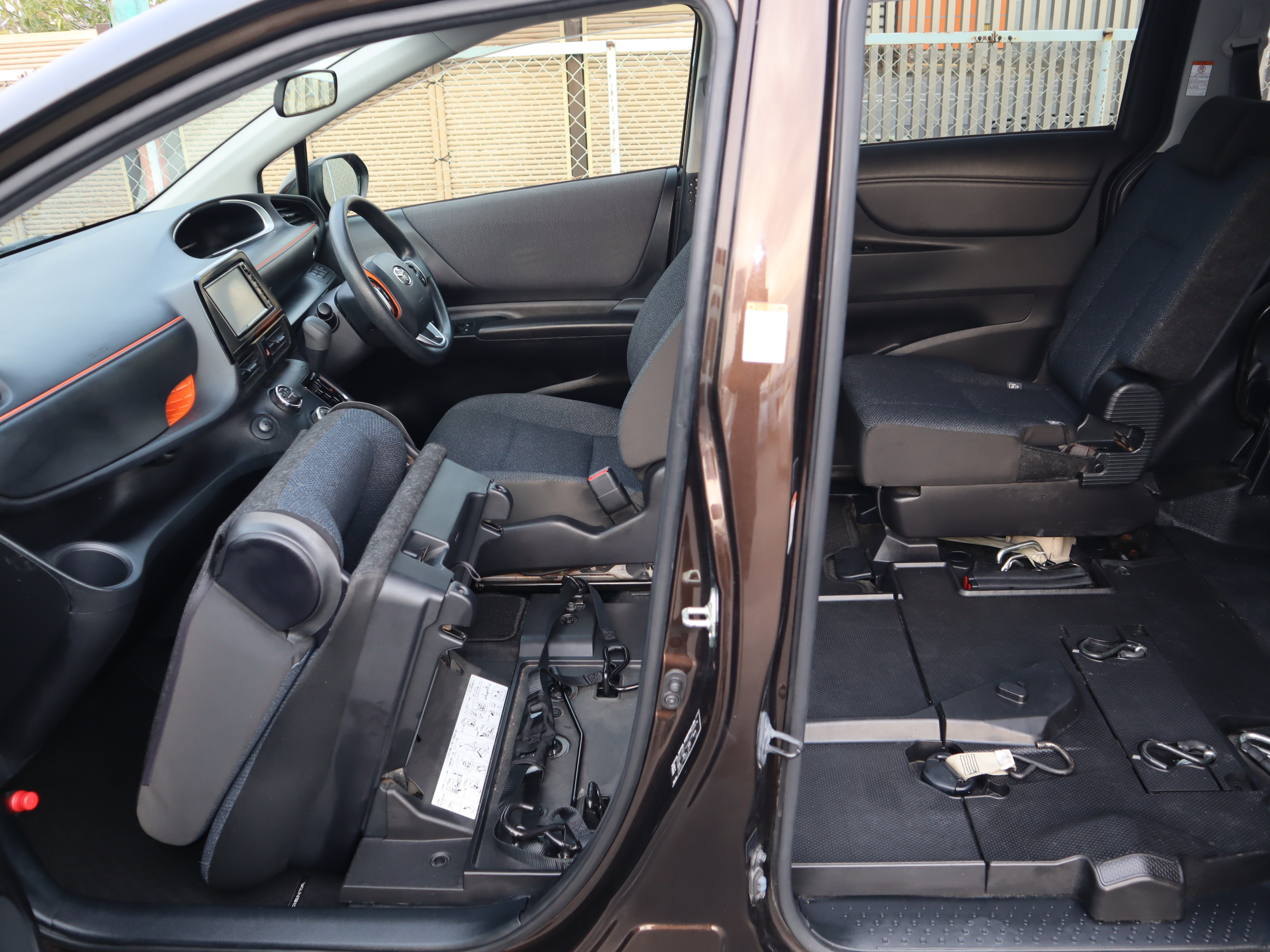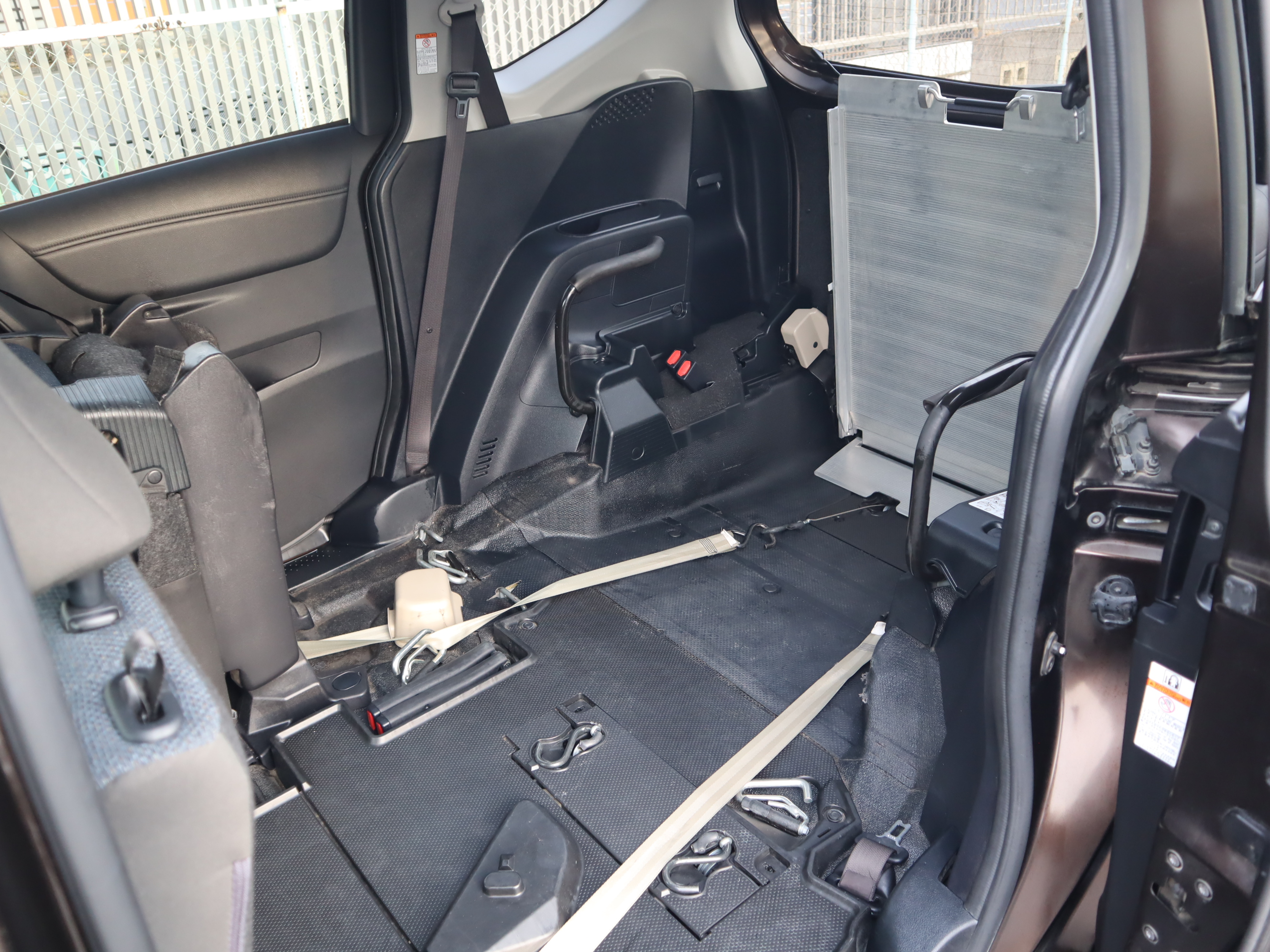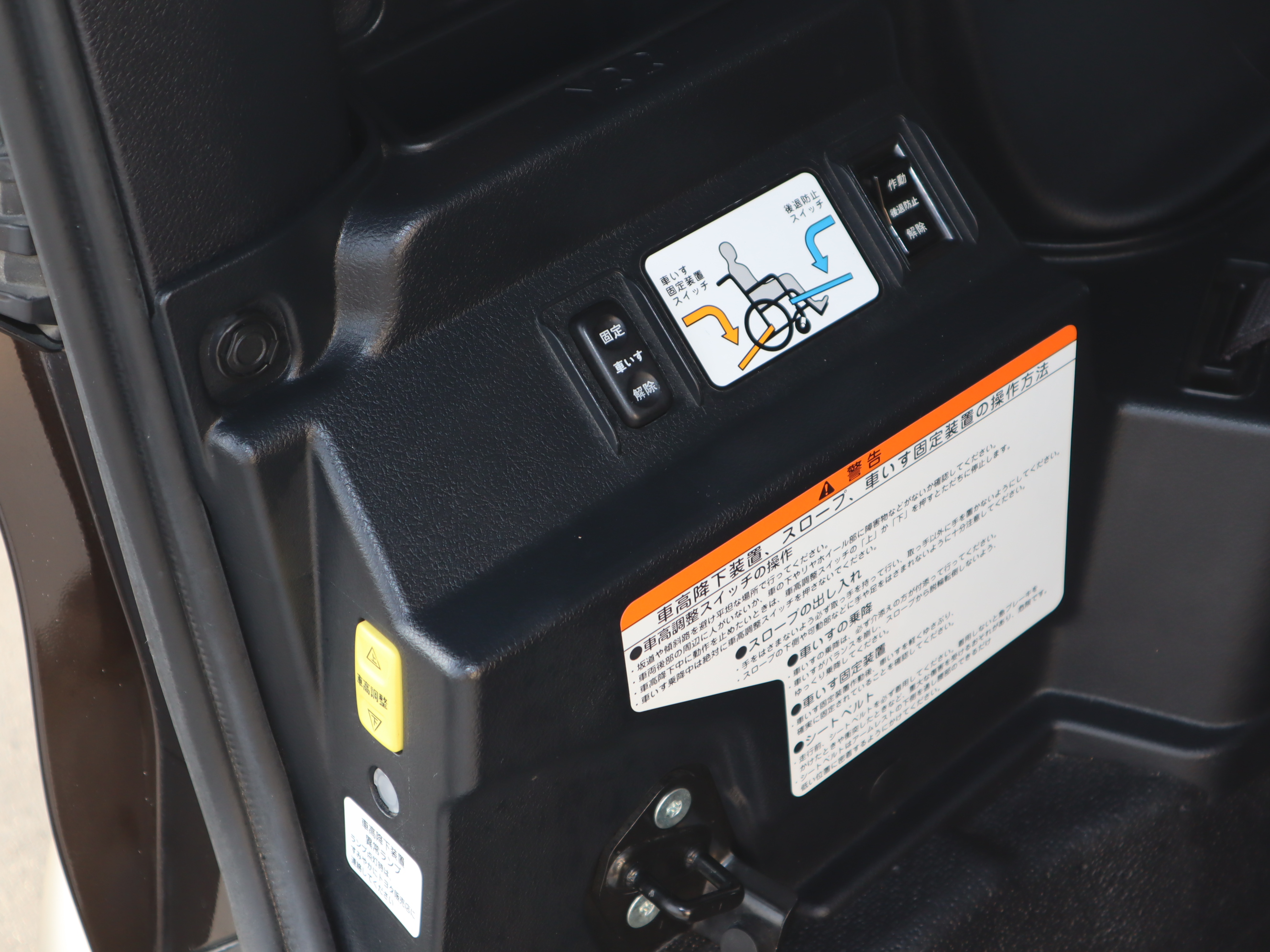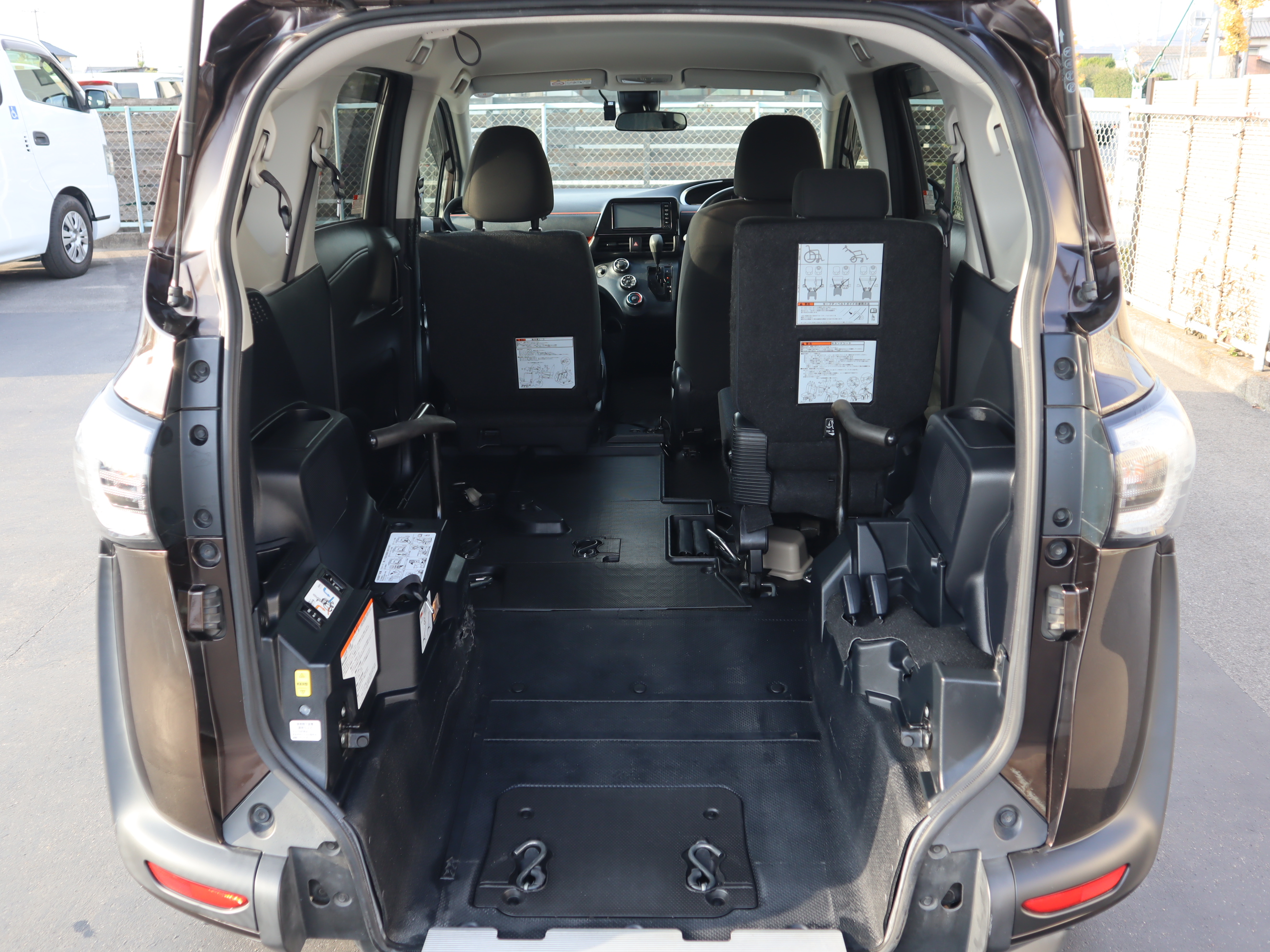 後ろの車高が下がるので、車いすのまま乗り込みやすくなります♪1.5列目まで車いす(主にお子様向け)が乗り入れられ、運転席から手が届き安心です。