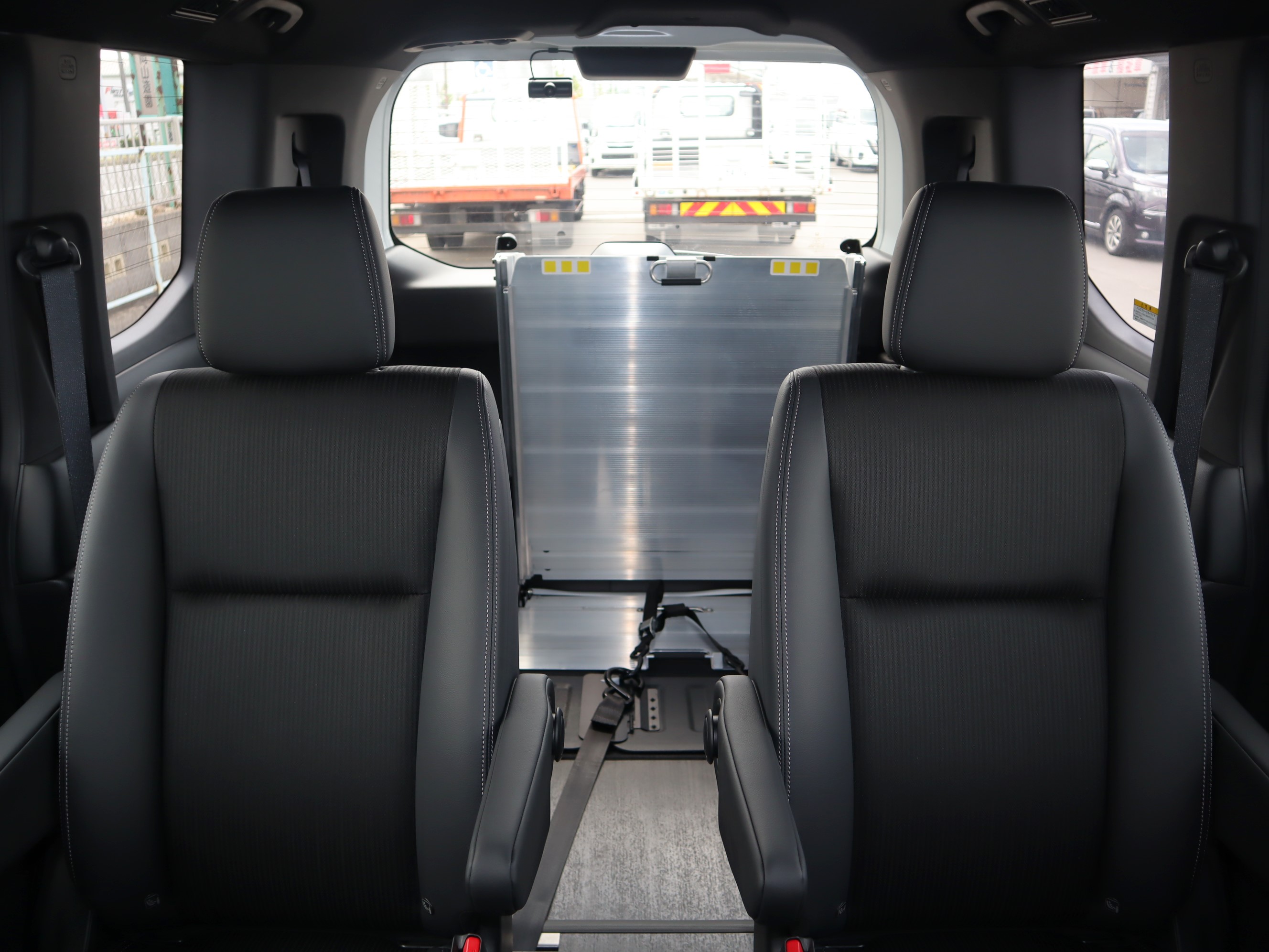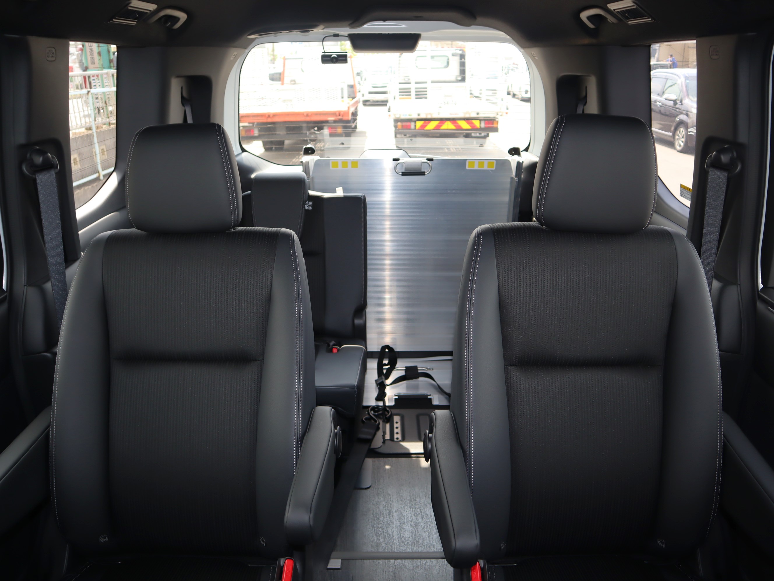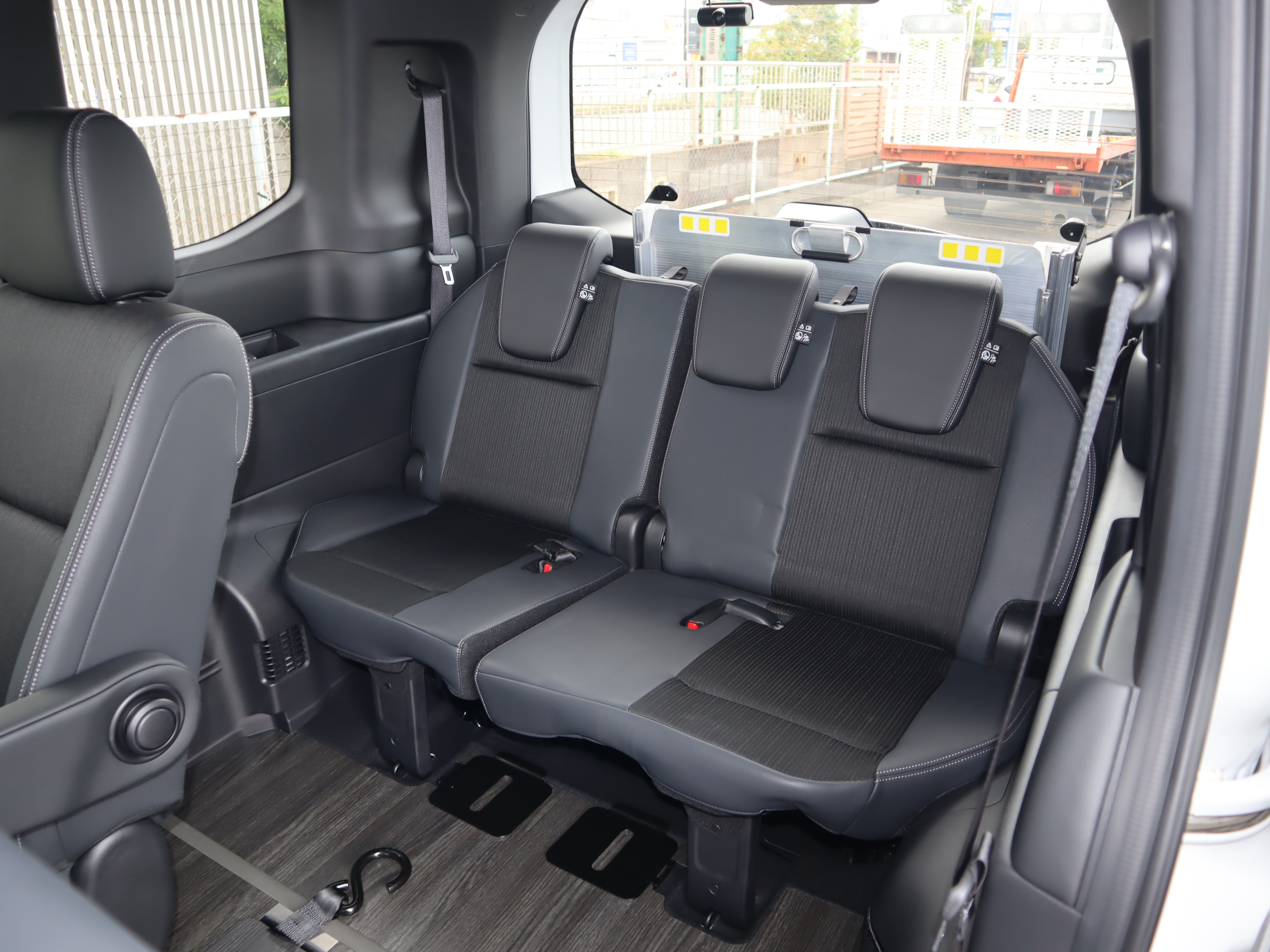 車いすの方の隣に1名座れます。※車いすのサイズによります。フリップダウンモニター(後席モニター)付きです!