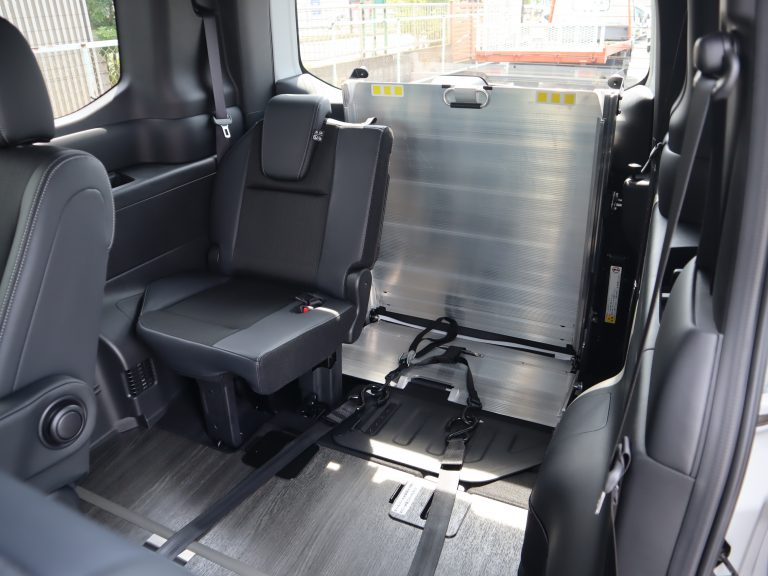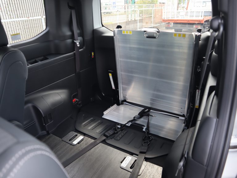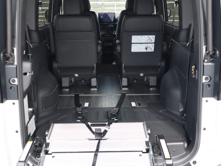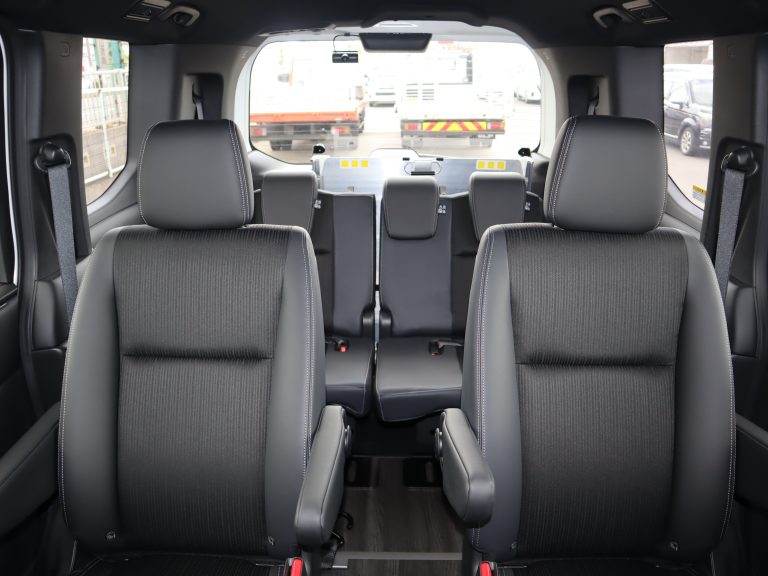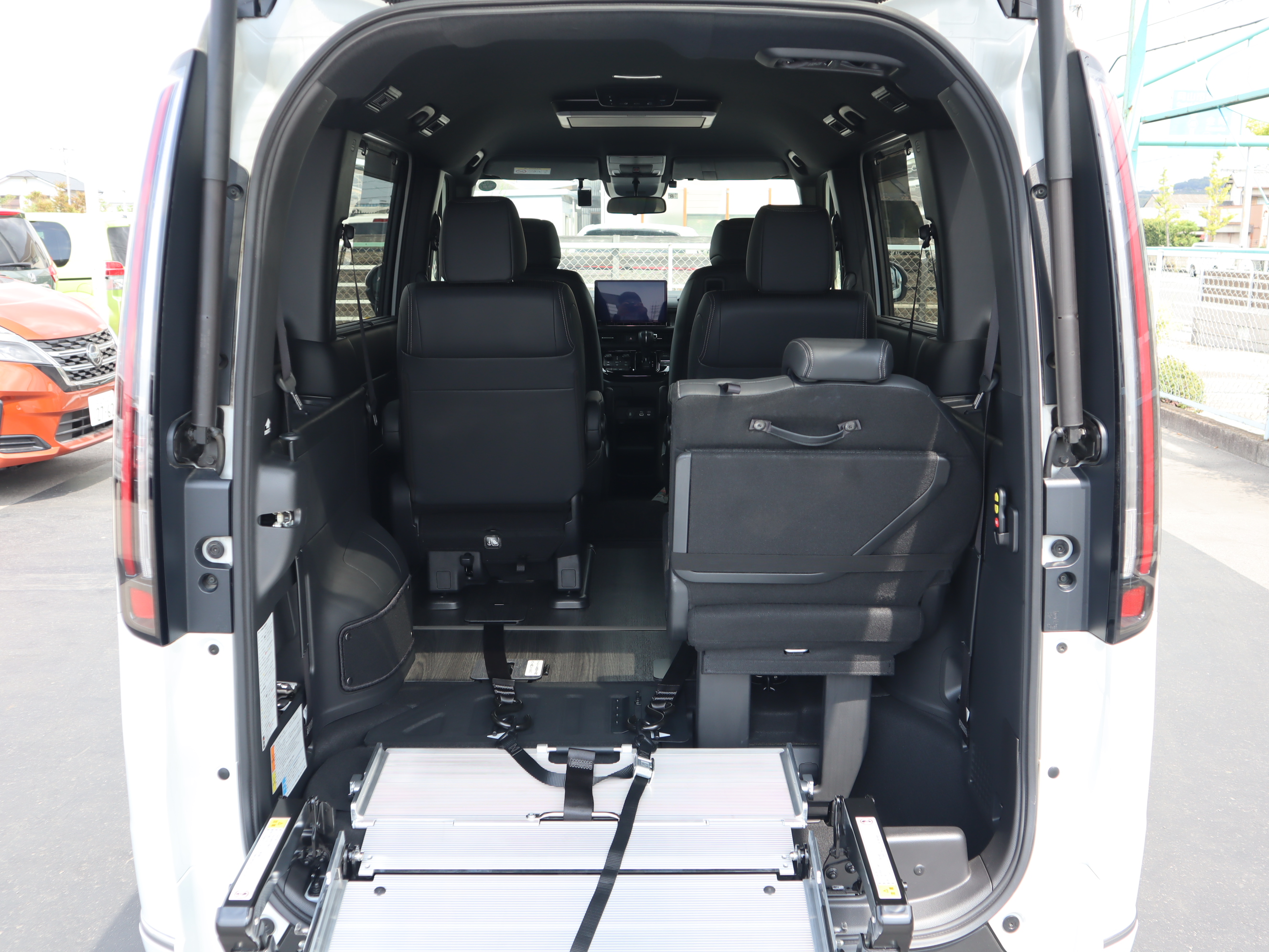車いすの方の隣に1名座れます。※車いすのサイズによります。フリップダウンモニター(後席モニター)付きです!