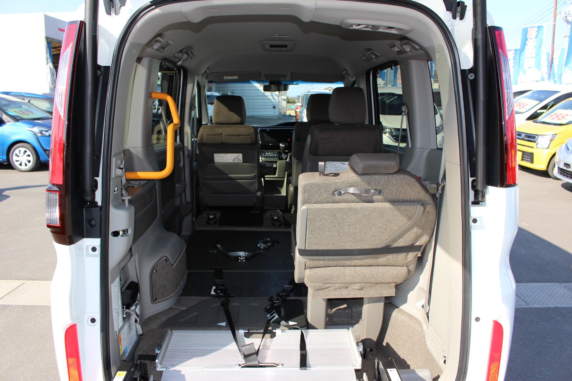 3列目シートの片側を戻すと、車いすの方2名と他に4名の6人乗りになります。