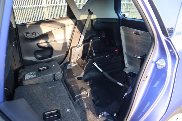 後ろの車高が下がるので、車いすのまま乗り込みやすくなります♪車いすの方の隣に1名座れます。