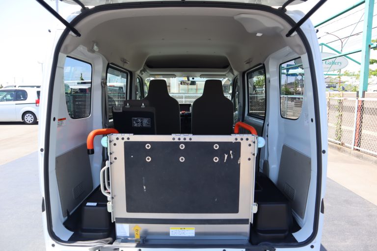 スロープ版を展開して車いすの方が入ります。車いすの方1名と他に3名の4人乗りです。