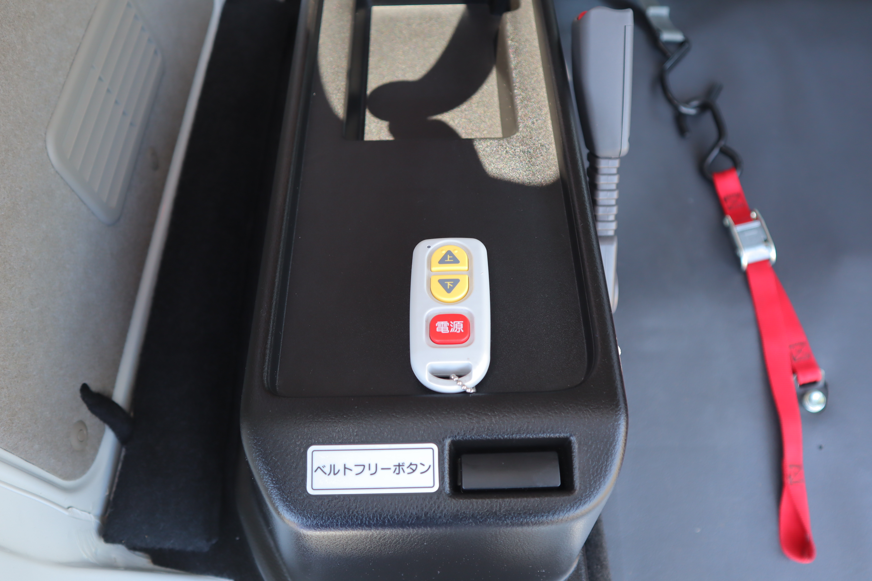前側ベルトがウィンチになっています。車いすを引っ張り上げてくれます。